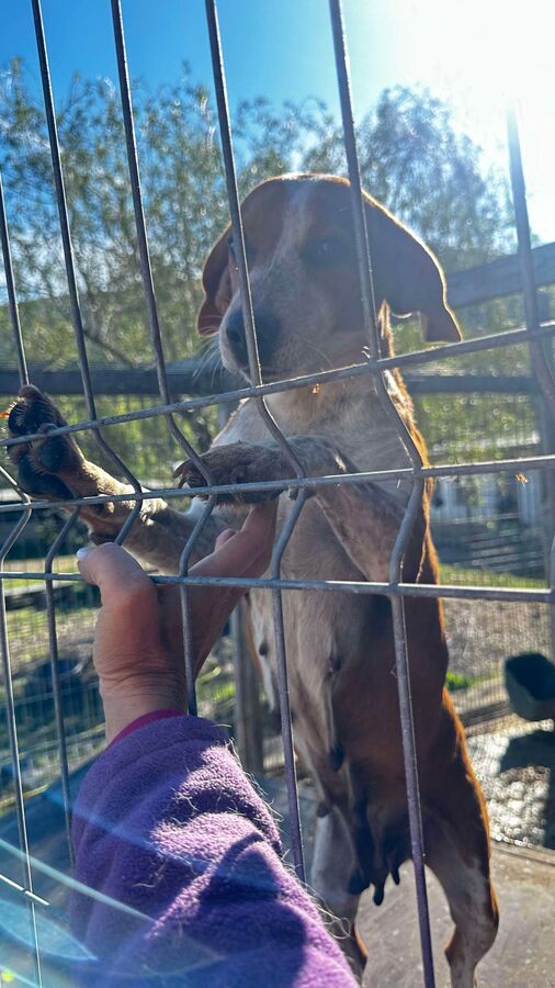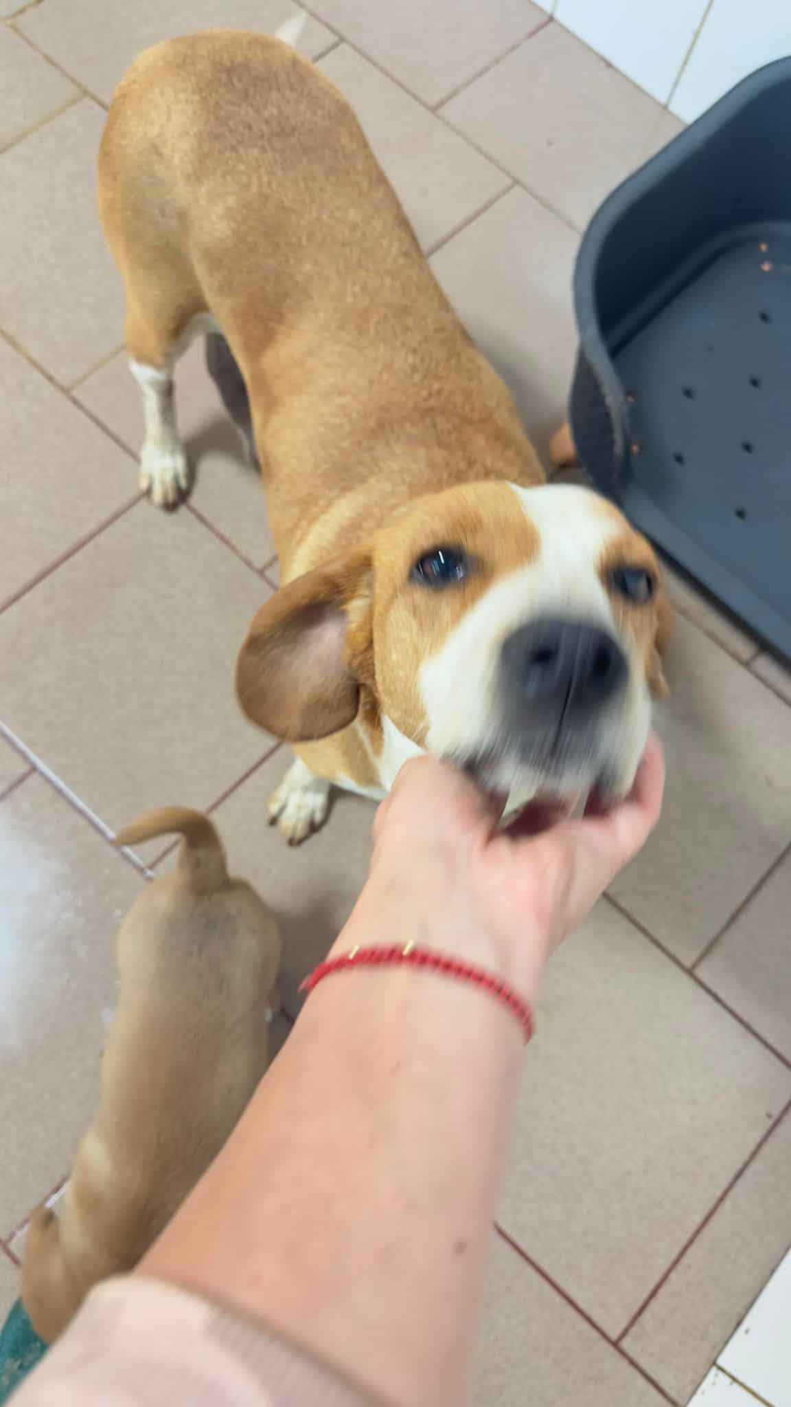 Die liebe Hündin mit den sanften Augen wurde mit ihrem Welpen ins Shelter gebracht. LUISE scheint schon einige Welpen gehabt zu haben, ihr Gesäuge ist sehr ausgeprägt. Sie kümmert sich liebevoll um die Welpen aber ist auch offen uns gegenüber und lässt sich sogar im Beisein des Welpen anfassen. Sie scheint die Nähe von Menschen zu kennen. Sie ist zutraulich und nett und zeigt sich verträglich. Bisher macht sie eher einen ruhigeren Eindruck, eine sehr liebe, feine Hündin.