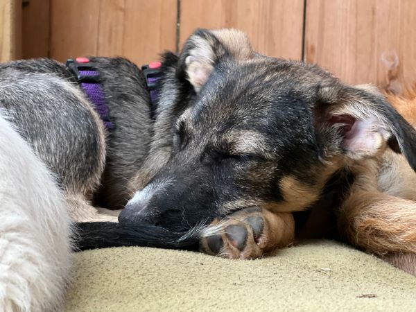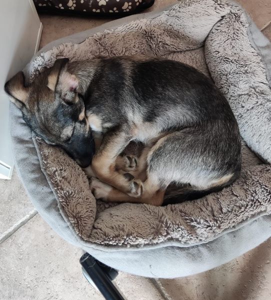 Hier bei uns sind Sofa und Bett tabu; gekuschelt wird natürlich trotzdem und Lumera ist vorne mit dabei, wenn es die Zeit dafür ist. Lumera ist auf dem guten Weg stubenrein zu sein, man muss aufmerksam und schnell sein. Sie kann im Auto entspannt mitfahren, ist im Home Office ruhig dabei, hält die Ruhezeiten gut ein. Alleine bleiben im Rudel klappt eine kurze Weile, ganz alleine mag Lumera noch nicht bleiben.