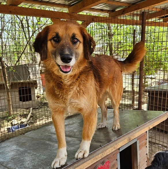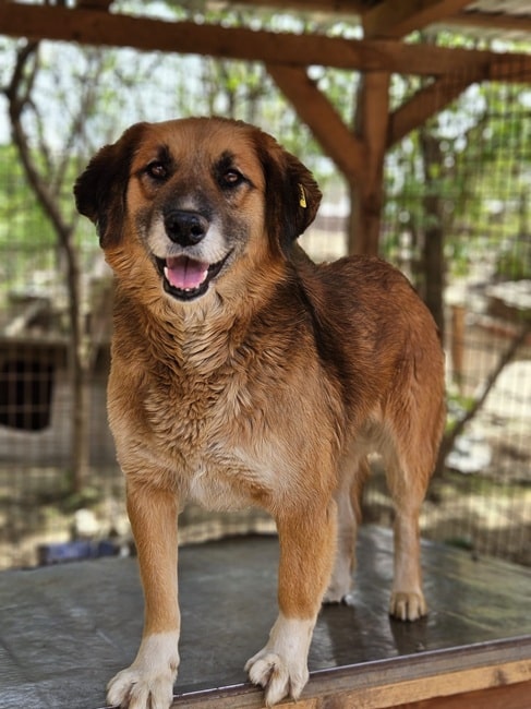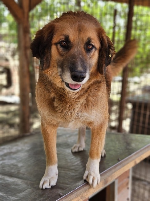 LUPINDA stand bei unserem Besuch neugierig und interessiert auf dem Hüttendach. Sie war sehr freundlich, kam gerne auch nah zu uns ran und nahm die Leckerchen aus der Hand. Mit den anderen Hunden war sie gut verträglich.