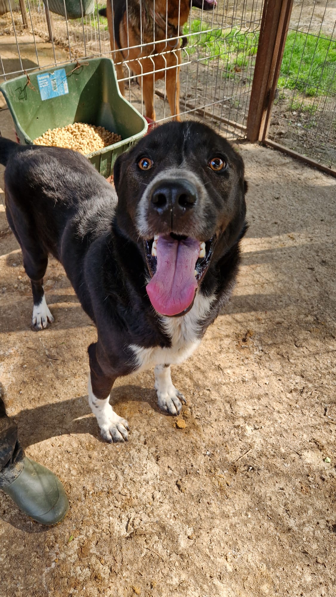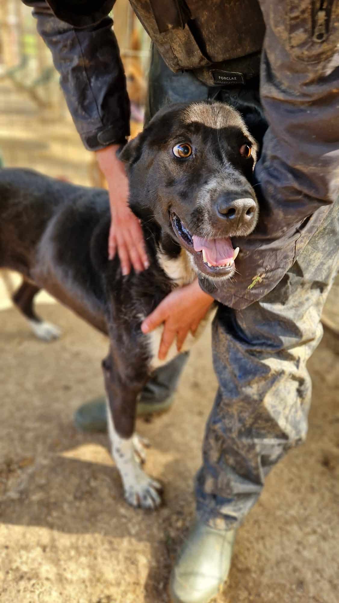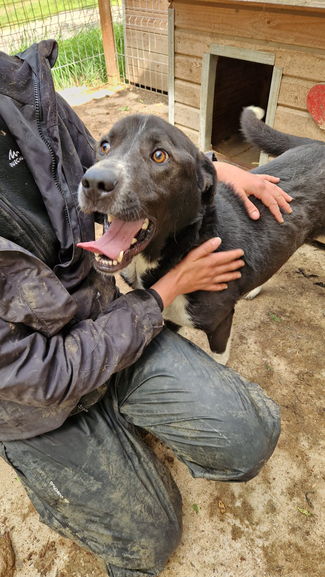 Der freundliche LURGAN freute sich sehr über unseren Besuch und wir konnten ihn bereits am Kennelgitter streicheln. Nach dem Betreten konnte er die Situation und unsere guten Absichten zunächst nicht richtig einschätzen und lief in Richtung seiner Hütte. Schnell entschied er sich jedoch wieder, dem seltenen Besuch aufgeschlossen und freundlich entgegen zu treten, sodass wir ihn in Ruhe streicheln konnten. Er nahm auch unser Futter gerne aus der Hand.