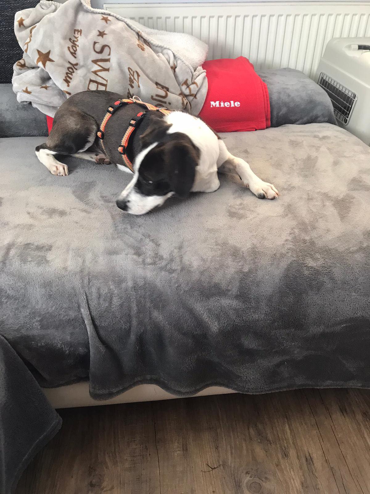 Lydie hat mittleres Temperament und liebt es gassi zu gehen, was mich lange genug sein kann, kann aber auch zu Hause sehr ruhig sein.
