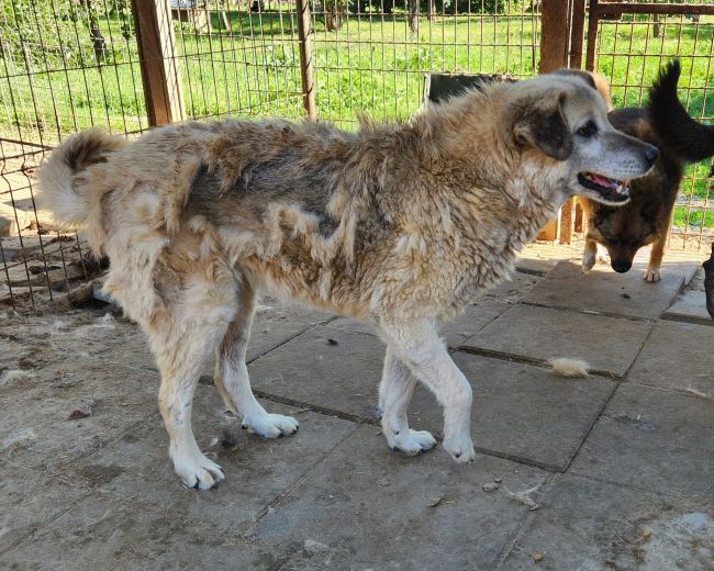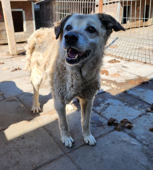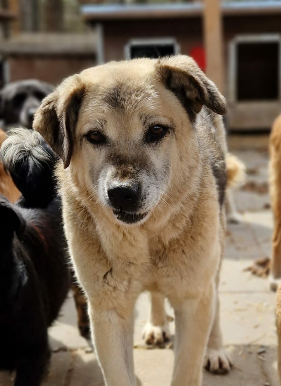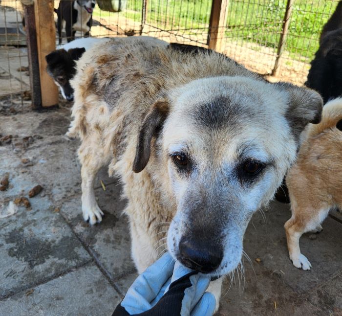 Die tolle LYSANNE präsentierte sich uns gegenüber sehr höflich und zurückhaltend, freundlich abwartend in der zweiten Reihe. Im Gewusel der kleineren, quirligeren Hunde läuft man fast Gefahr sie trotz ihrer Größe zu übersehen, da sie eher von der stillen Sorte ist. Sie wartet bis sie an der Reihe ist und nimmt dann dankbar die angebotenen Leckerchen aus der Hand. Am Schnäuzchen ließ sie sich vorsichtig streicheln. Ihr Fell ist mittlerweile stark verfilzt, sodass ihr Fellpflege guttun würde, um sie von dem überschüssigen Filz zu befreien.