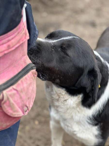 Was für ein toller Kerl. Nach ganz kurzer Kennenlernphase lag er uns zu den Füßen und genoss es ausgiebig, am Bauch gekrault zu werden. Er zeigte sich sehr freundlich – auch gegenüber seiner Kennelkollegin. Ob es mit Rüden genauso gut klappt, können wir nicht sagen. Da der Mensch für ihn der Mittelpunkt ist, kann er aufgrund seiner großen Zutraulichkeit sogar Einzelhund werden. Muss nicht, aber bei ihm mal bedenkenlos möglich. Toller Typ.