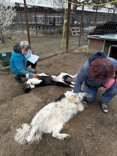 LYSCIEN zeigte sich uns gegenüber wieder als ganz toller Hund. Er hat natürlich Power und eine stattliche Größe, wir haben ihn aber nicht als übermäßig distanzlos oder aufdringlich erlebt. Er hat sich über uns gefreut, ist sehr menschenbezogen und hat sich super gerne und überall anfassen lassen, aber nach einer kurzen Zeit in seinem Kennel hat LYSCIEN sich auch schnell beruhigt. Mit der Hündin in seinem Kennel (Tikva) kommt er sehr gut zurecht. LYSCIEN hat sich sogar auf den Rücken gedreht, um sich streicheln zu lassen. Leider ist er aktuell zu dick.