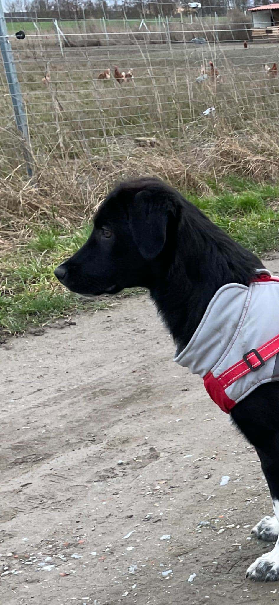 Andere Hunde findet sie super toll, so dass sie, zwar welpentypisch unterwürfig, aber doch zielgerichtet drauf zu flitzt. Sie ist sehr kontaktfreudig und hartnäckig im Freundschaften schließen. Weil sie so die Gesellschaft anderer Hunde so sehr liebt, wünschen wir uns ein Zuhause mit vorhandenem Ersthund. Sie ist weder Futter, noch Spielzeugneidisch, weder den Menschen noch Hunden gegenüber.