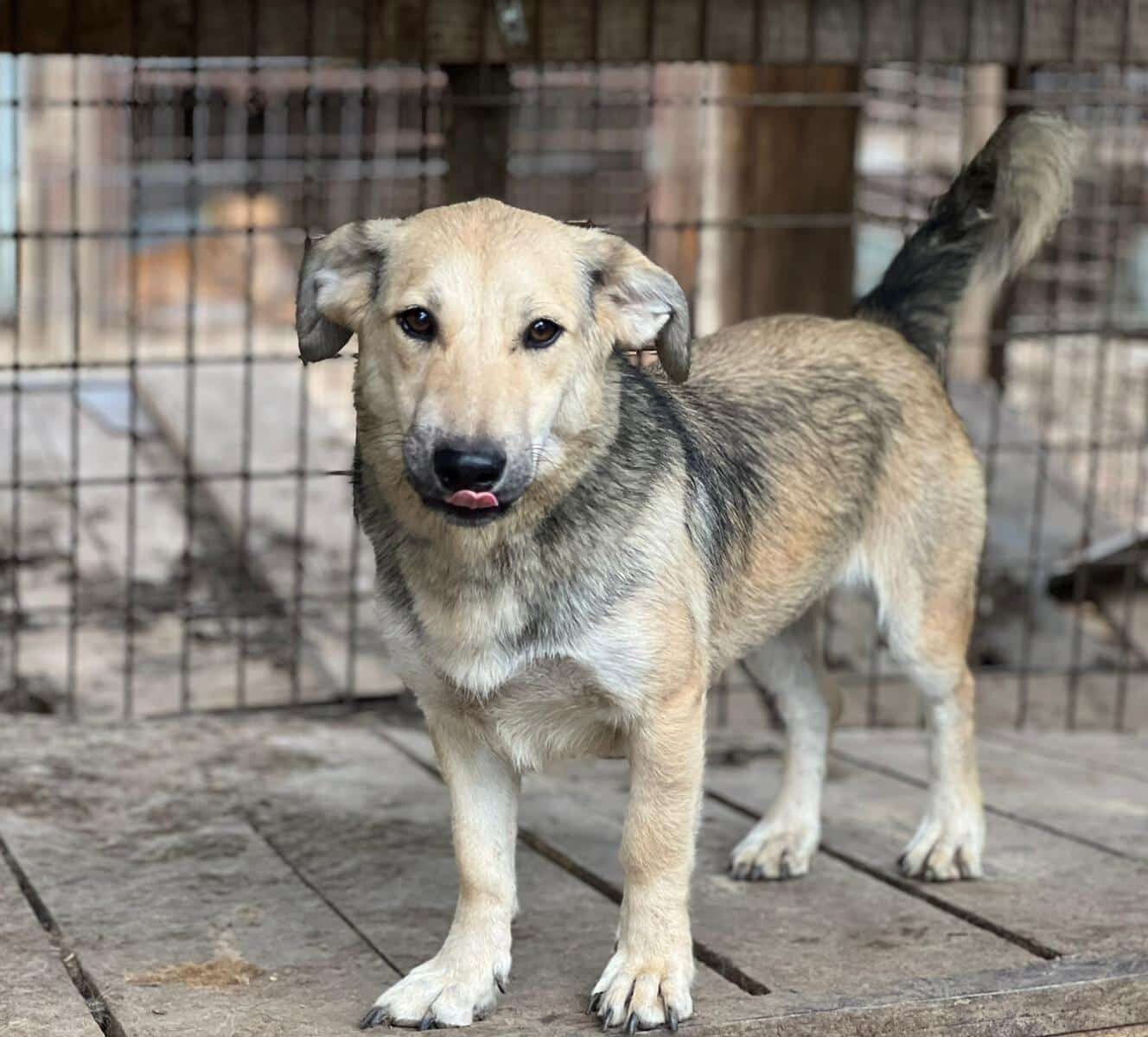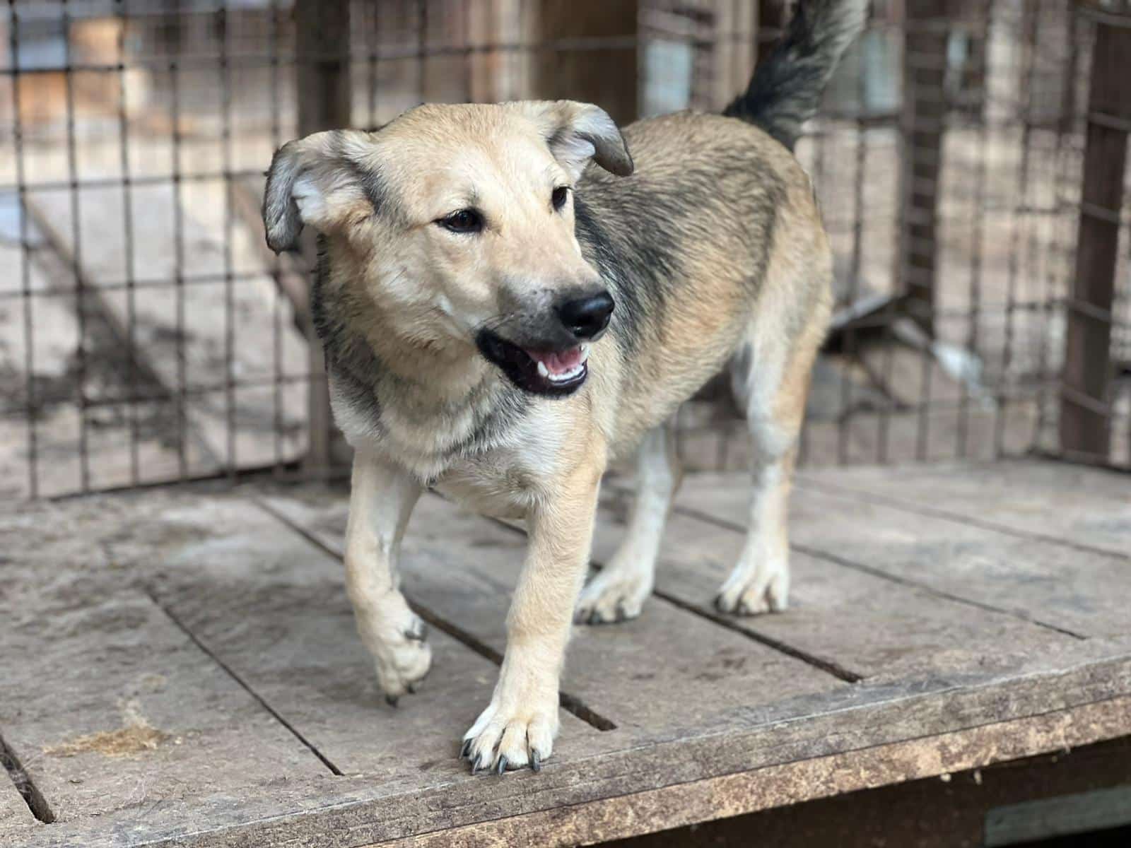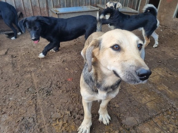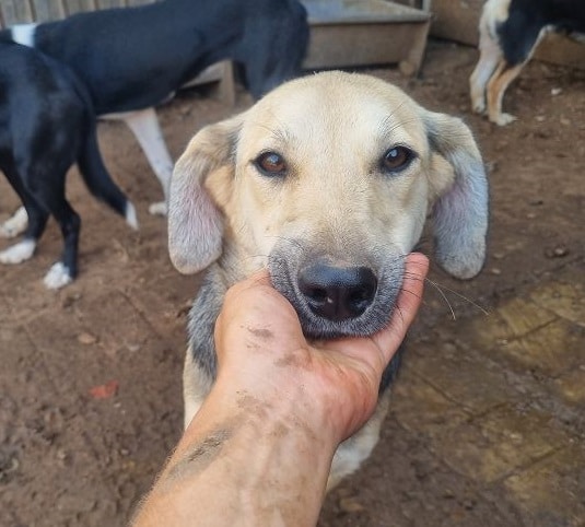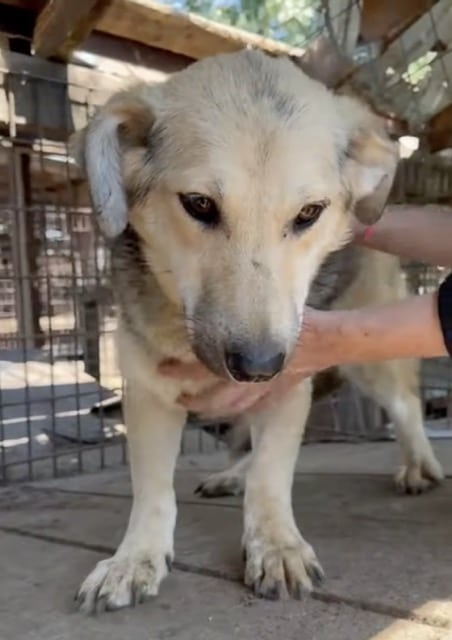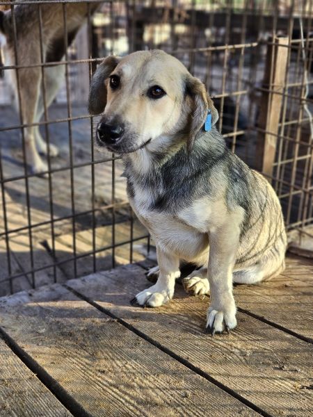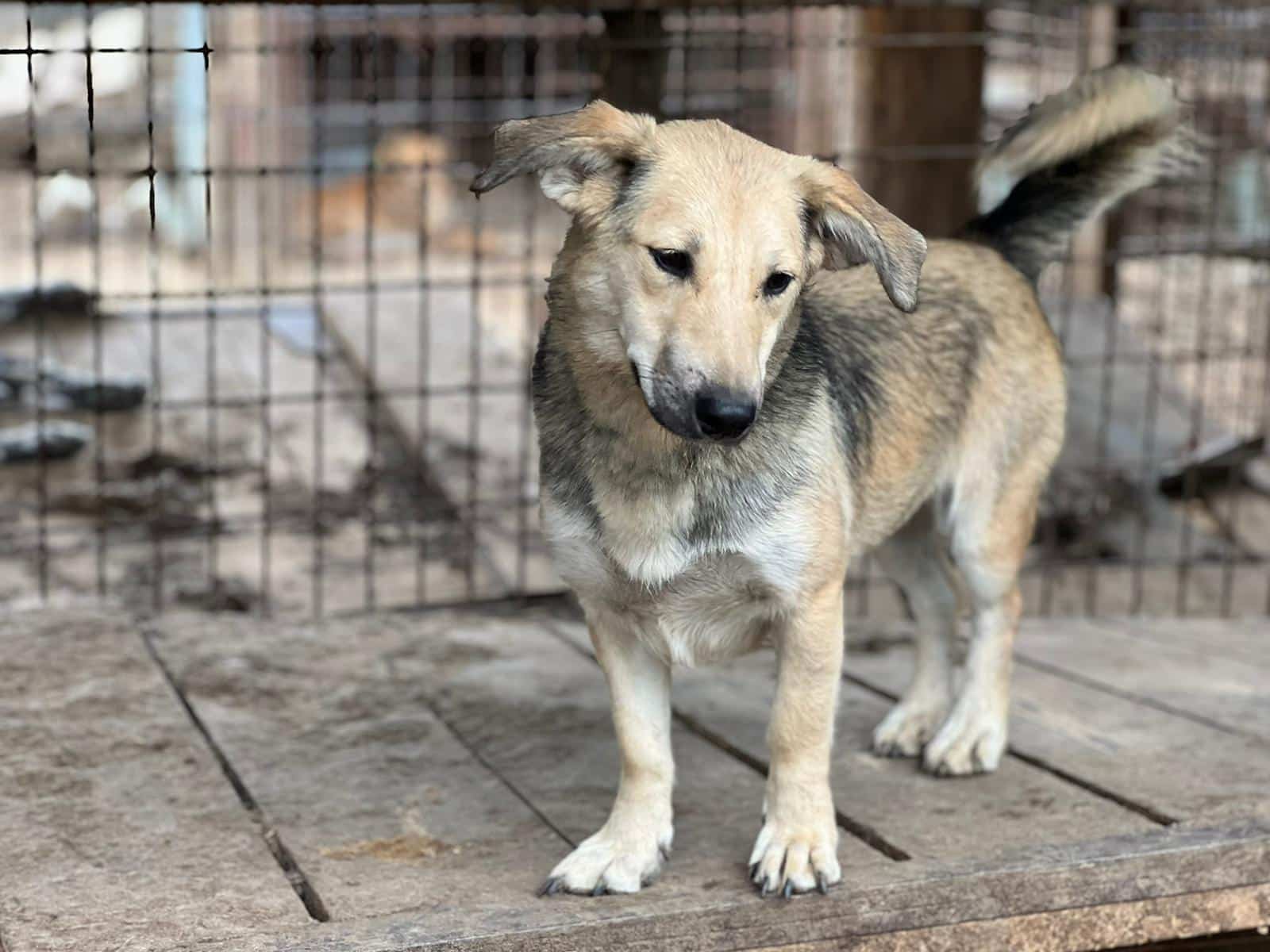 Mable wuchs leider fast ohne menschlichen Kontakt im großen Tierheim in Bucov/Rumänien auf. Das merkt man ihr mittlerweile auch etwas an. Sie kam nicht direkt auf uns zu, aber als wir uns mit beschäftigten, blieb sie stehen und das Eis war schnell gebrochen. Dann ließ sie sich streicheln und auch die Fleischbällchen kamen gut an. Mable ist eine freundliche Hündin, die wir auch auf den Arm nehmen konnten. Dabei hat sie uns geflüstert, dass sie gerne ein kuscheliges Körbchen und ein eigenes Zuhause hätte.