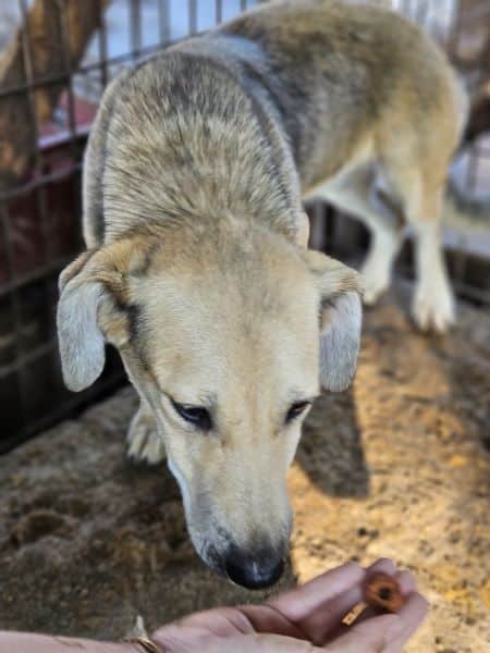 Die süße MABLE begrüßte uns neugierig, als wir ihren Kennel betraten. Als sie merkte, dass wir es gut mit ihr meinen, taute sie schnell auf. Gerne nahm sie unsere Leckerchen und wir konnten MABLE streicheln. Man merkt ihr aber an, dass sie Streicheleinheiten noch nicht kennt. Woher auch? MABLE ist seit Welpe an im Shelter. Wir hoffen für MABLE, dass sie bald die Chance auf eine Ausreisemöglichkeit bekommt.