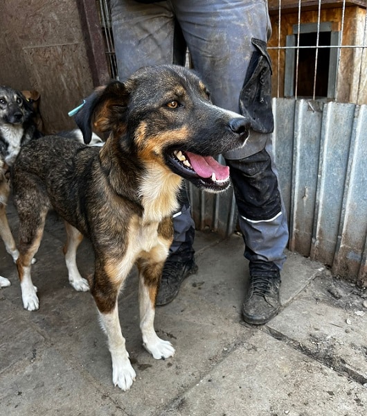 MAC unser Sonnenschein stand schon am Kenneltor und winselte, als er uns von weitem sah. Seine Freude über unsere Zuneigung ist groß, er leidet sehr ohne seine geliebten Streicheleinheiten. MAC ist ein agiler junger Rüde, der immer in unserer Nähe war und die Aufmerksamkeit einforderte. Er düste durch den Zwinger, fand aber auch gut Ruhe, wenn man sich eine Weile mit ihm beschäftigte. Er zeigte sich in unserer Anwesenheit verträglich mit den anderen Hunden und nahm natürlich auch gern die Leckerlie. MACs rechtes Hinterbein ist leider immer noch geschwollen und wir wünschen uns sehr, dass er schon bald ausreisen darf, wartet er doch nun schon über ein Jahr auf seine große Chance….