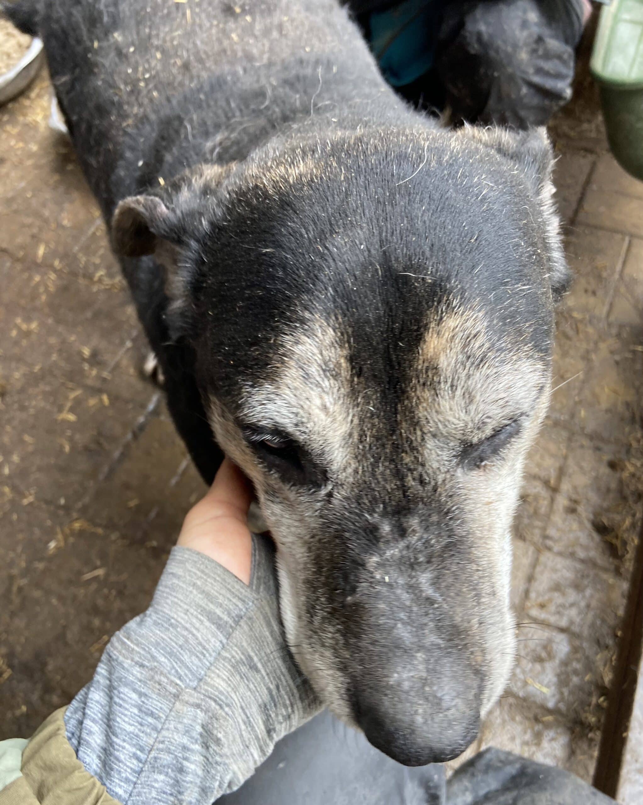 MACLEOD sitzt mittlerweile bereits 4 1/2 Jahre in einem kleinen Kennel. Leider ist er aktuell viel zu dick und hat beginnende Hautprobleme. Er freute sich sehr über unseren Besuch, war super nett und ließ sich gerne streicheln.