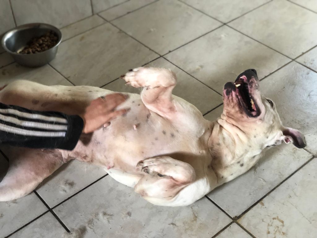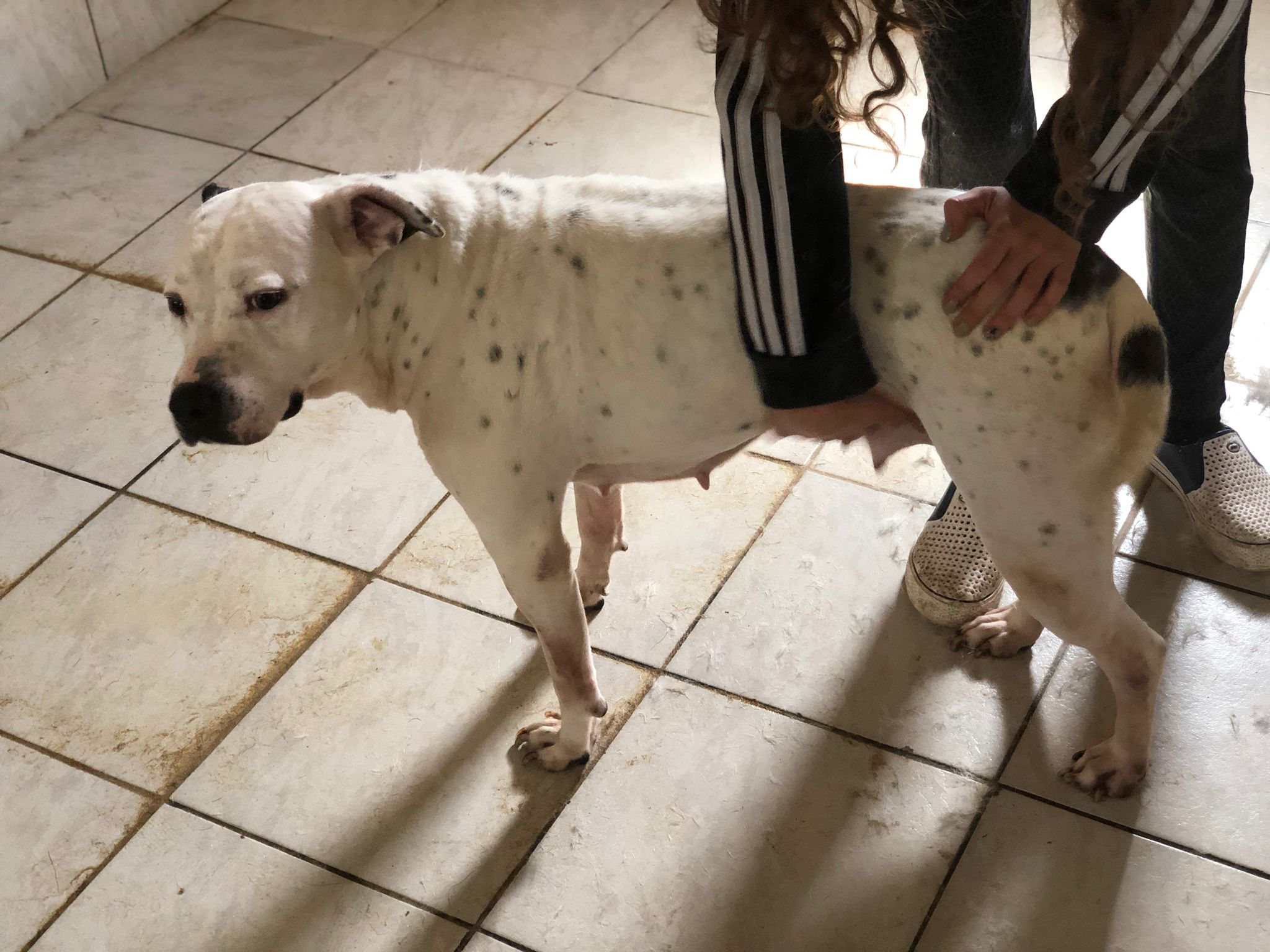 Hündin geb. ca. 2017/2018 Größe: ca. 45cm hatte Welpen, Bulldog-Mix