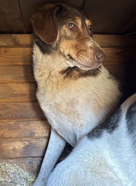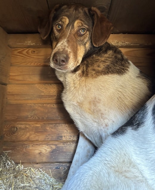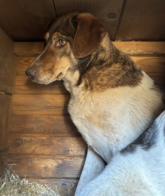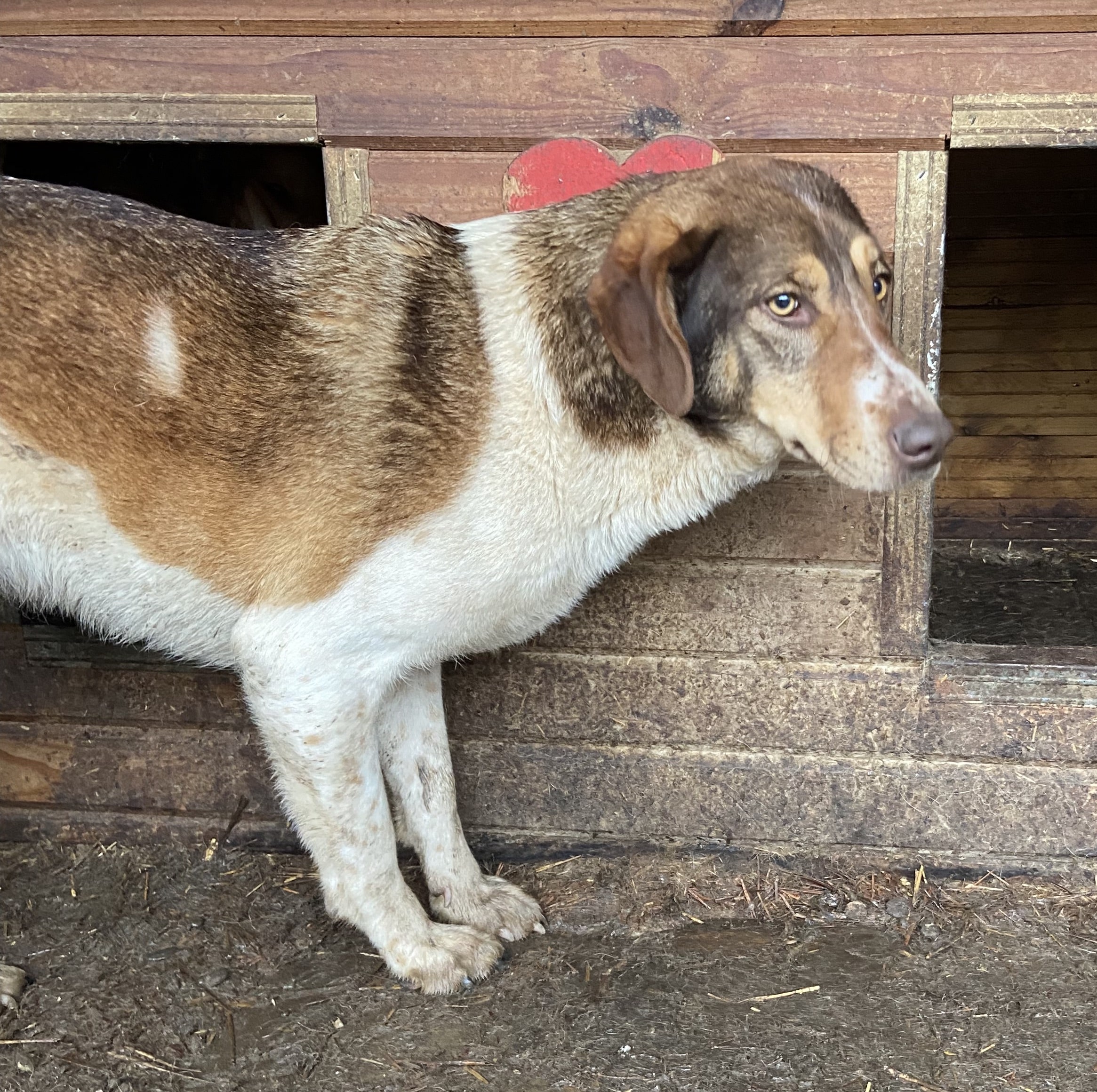 Das hübsche Hundemädchen MADDY musste nun auch ihren dritten Geburtstag im Shelter erleben… Noch nichts durfte sie von der Welt erfahren, niemals als Welpe gekuschelt und geliebt werden… Es gab keinen Menschen in ihrem trostlosen Leben, der mit ihr spielte oder über Wiesen tobte. Und so ist aus unserer MADDY leider eine sehr schüchterne und uns Menschen gegenüber skeptische Hündin geworden. Sie saß bei unserem Besuch zuerst in der Hütte, als wir das Dach öffneten, lief sie mit den anderen hinaus in den Kennel. Zuerst etwas panisch, blieb sie schutzsuchend hinter ihrem größeren Bruder MANNY. Sie war stets auf der Hut und schaute genau zu, was wir taten und wohin wir uns bewegten. Im Schatten der anderen, mutigeren Hunde suchte sie aber auch unsere hingeworfenen Leckerlie, denn dort fühlte sie sich sichtbar wohler. MADDY braucht Menschen, die Erfahrung mit schüchternen Hunden haben. Sie zeigte sich mit allen anderen Hunden im Kennel sehr verträglich. Sie braucht im neuen Zuhause unbedingt einen fröhlichen und souveränen Ersthund an ihrer Seite, der ihr zeigt, wie toll das Zusammenleben mit Menschen sein kann. Die zurückhaltende MADDY wird Zeit, Geduld und Raum brauchen, damit sie in ihrem Tempo in ihr neues, sorgenfreies Hundeleben starten kann. Wo sind die Menschen, die ihr dabei helfen möchten und dafür miterleben dürfen, wie MADDY endlich die Welt entdeckt und erobert?