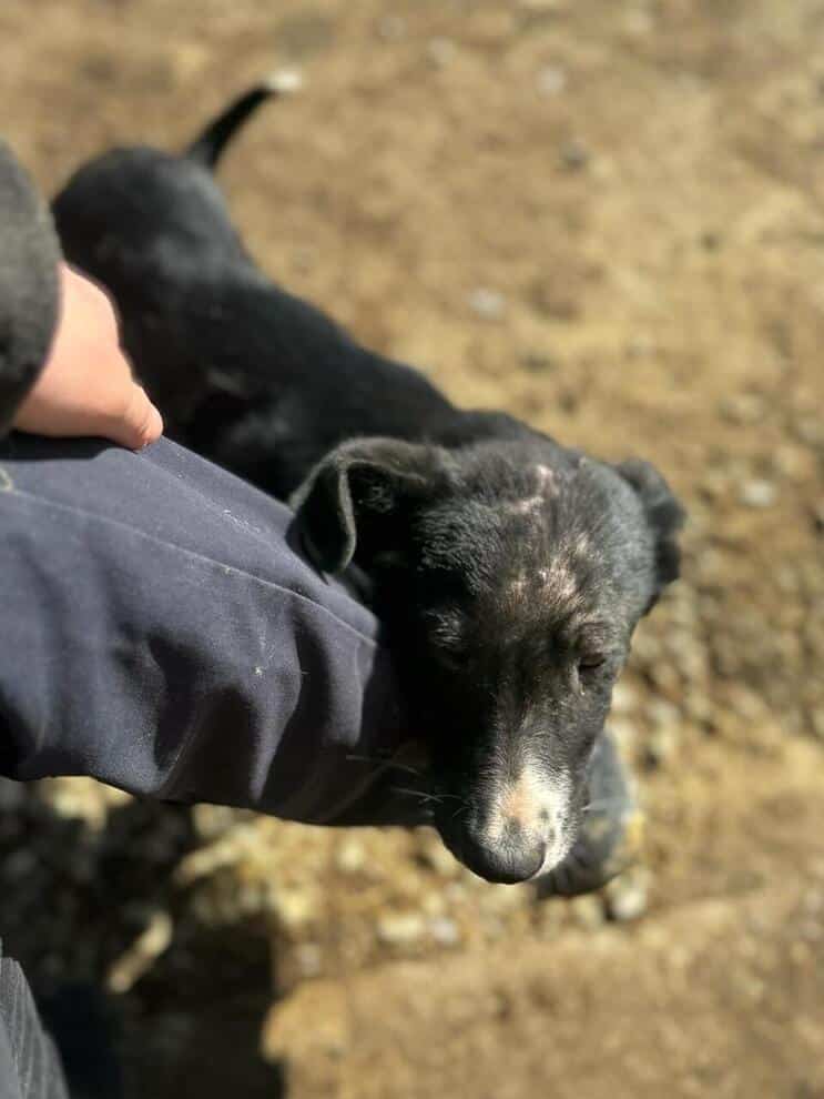 Vermutlich ausgelöst durch den Stress im Shelter, hat der kleine Mads, leichte Hautprobleme am Kopf.