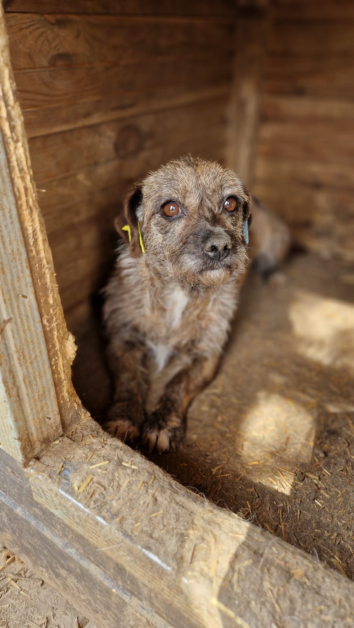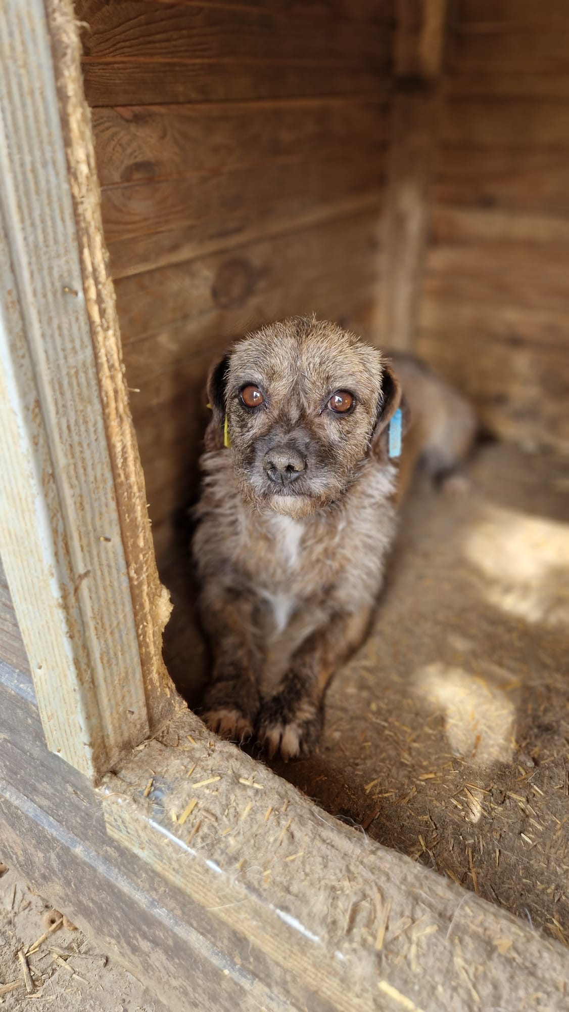 MÄUSCHEN ist eine bezaubernde, super nette kleine Hündin, die uns sehr berührt hat. Sie sitzt mit vielen Welpen und anderen Hündinnen in einem Kennel und das fast nur in der Hütte. MÄUSCHEN ist die Kleinste in ihrem Kennel, und der eher ruhigen Hündin scheint das Gewusel zuviel zu sein. Sie ließ sich problemlos von uns streicheln und man spürte, wie sehr sie die Zuwendungen genossen hat.