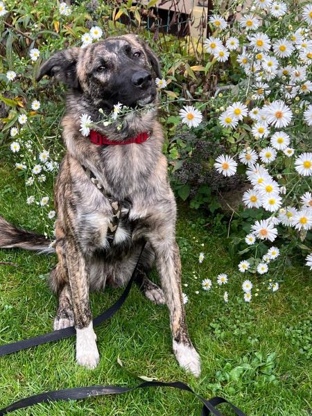 Wenn ich mir etwas wünschen dürfte, wäre es eine aktive Familie mit Haus und Garten. Mit Pflegeherrle durfte ich schon joggen gehen und es machte mir großen Spaß. Kinder sollten aufgrund meiner Größe bereits im Jugendalter sein. Ich habe übrigens zu Pflegefraule ganz fix eine enge Beziehung aufgebaut, gegenüber Männern bin ich manchmal (dunklerer Typ) skeptisch, lasse mich aber Dank Leckerli ganz schnell davon überzeugen, dass die toll sind. Solltest du in meine Kategorie “Vorsicht, der ist spooky” fallen, nicht verzagen, Pflegeherrle fragen, der hatte mich ganz fix um den Finger gewickelt und seither weiche ihm nicht mehr von der Seite.