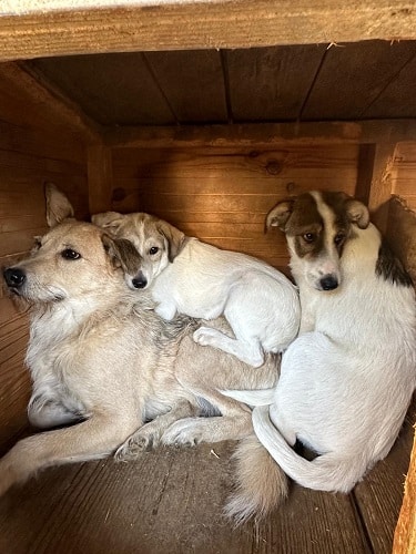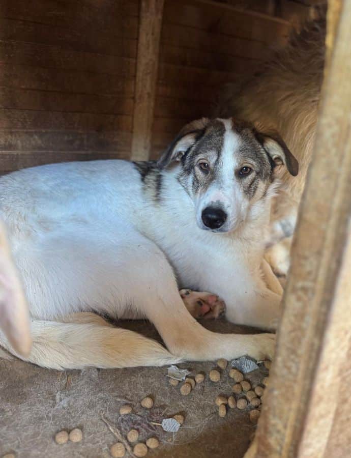 Während unseres Besuchs lag MAGS die ganze Zeit still in seiner Hütte, als wolle er sich unsichtbar machen. Erst als wir das Hüttendach geöffnet haben, kam er langsam zum Vorschein, vorsichtig, devot und weiterhin sehr zurückhaltend. Menschen gegenüber ist Mags unsicher, er weicht aus und sucht lieber Abstand als Nähe. Für MAGS wünschen wir uns ein Zuhause mit viel Geduld, Verständnis und im besten Fall einem souveränen Ersthund, der ihm zeigt, dass das Leben auch schöne Seiten hat.