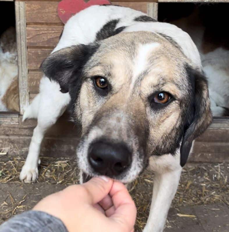 Sie zeigte sich bei unserem Besuch sehr neugierig und interessiert. Die willkommene Abwechslung im tristen Shelter-Alltag freute sie sichtlich und ihre Rute wedelte unentwegt. Herzallerliebst überspielte sie ihre Unsicherheit damit, lustig vor uns umher zu springen. Immer wieder kam sie ganz dicht heran und nahm mutig die Leckerlie direkt aus unseren Fingern. Als wir uns weiter näherten, wich sie zurück und suchte dann Unterschlupf in der sicheren Hütte. Dort konnten wir sie behutsam streicheln und sie nahm weiterhin dankbar die Leckerlie. Diese Zuwendung ist noch neu und deshalb ungewohnt für sie, doch MAHALI hat uns gezeigt, dass sie uns gerne vertrauen würde. Wir suchen nun dringender denn je einen erfahrenen und liebevollen Platz, wo MAHALI in ihrem Tempo und mit Unterstützung dieses Vertrauen aufbauen kann. Ihre fröhliche und neugierige Art sowie ihre Vorliebe für Leckereien werden ihr dabei helfen, genauso gerne würde sie sich sicher auch an einem souveränen Ersthund orientieren. Wir wünschen uns, dass die süße MAHALI schon bald diese Chance erhält und auf die Sonnenseite des Lebens wechseln darf, damit sie nicht noch mehr wertvolle Jahre verliert…