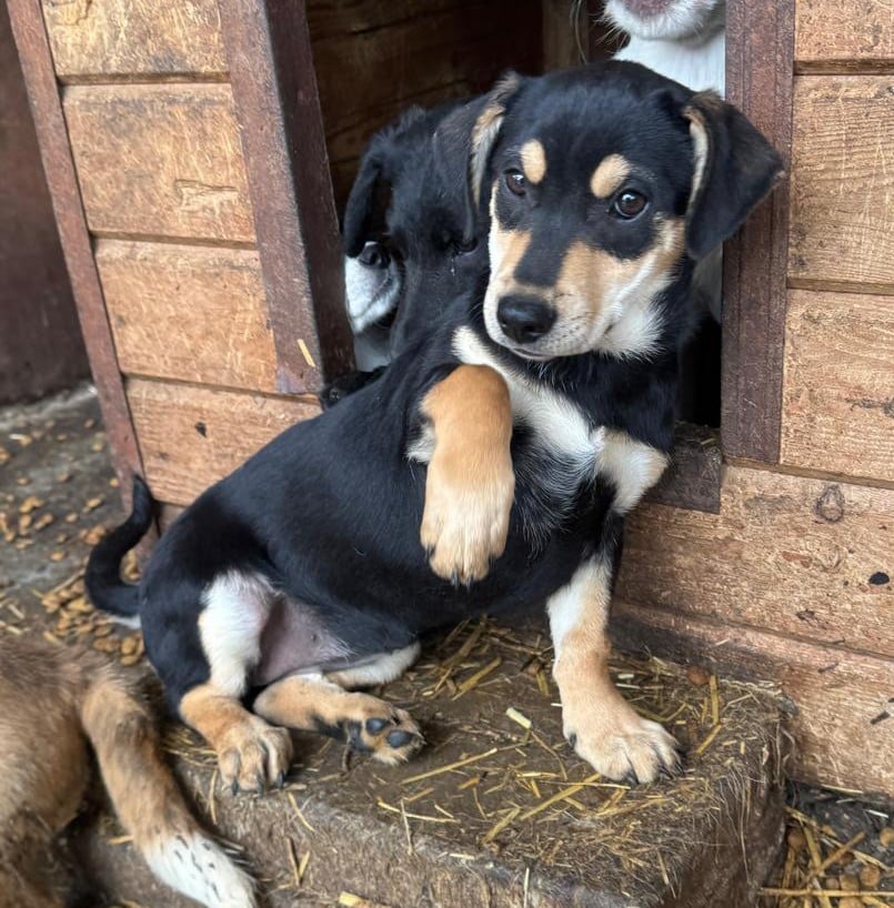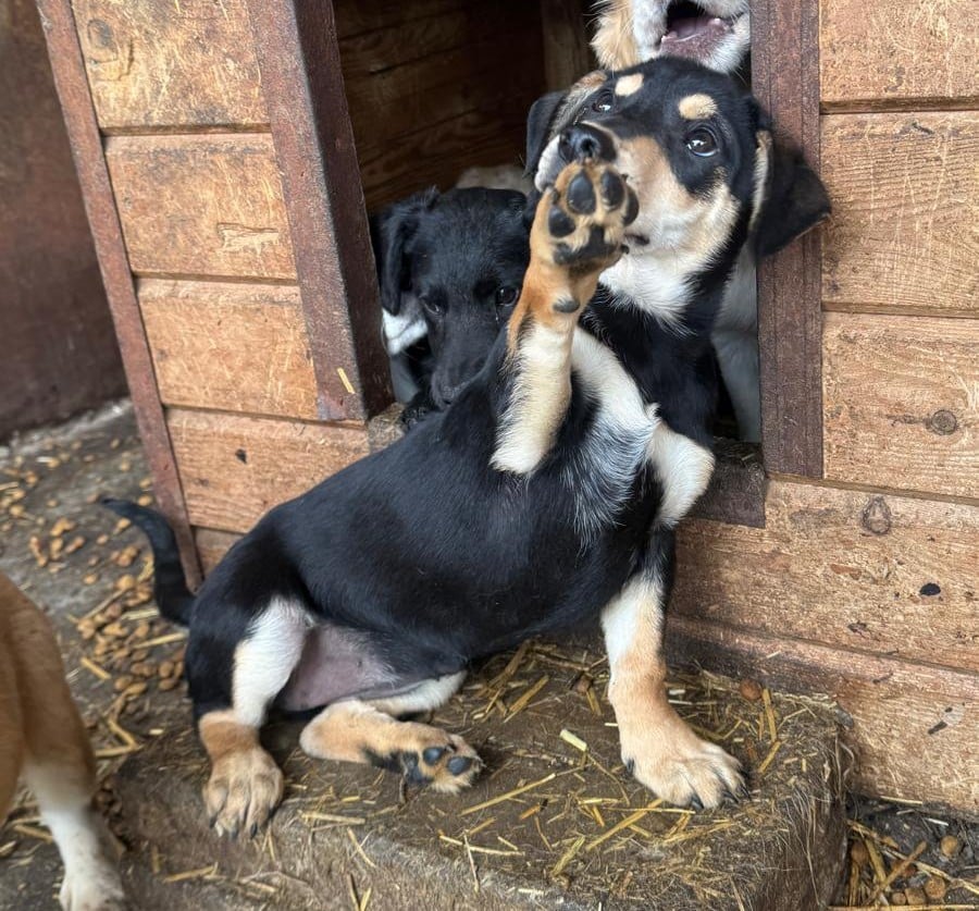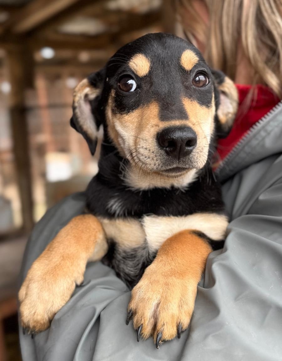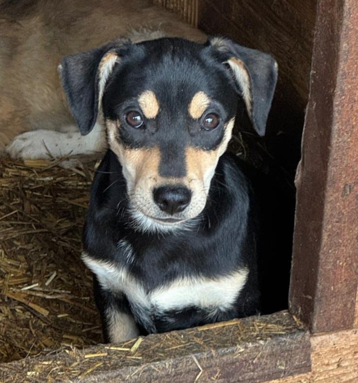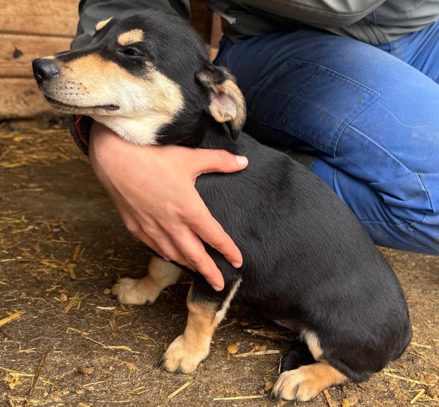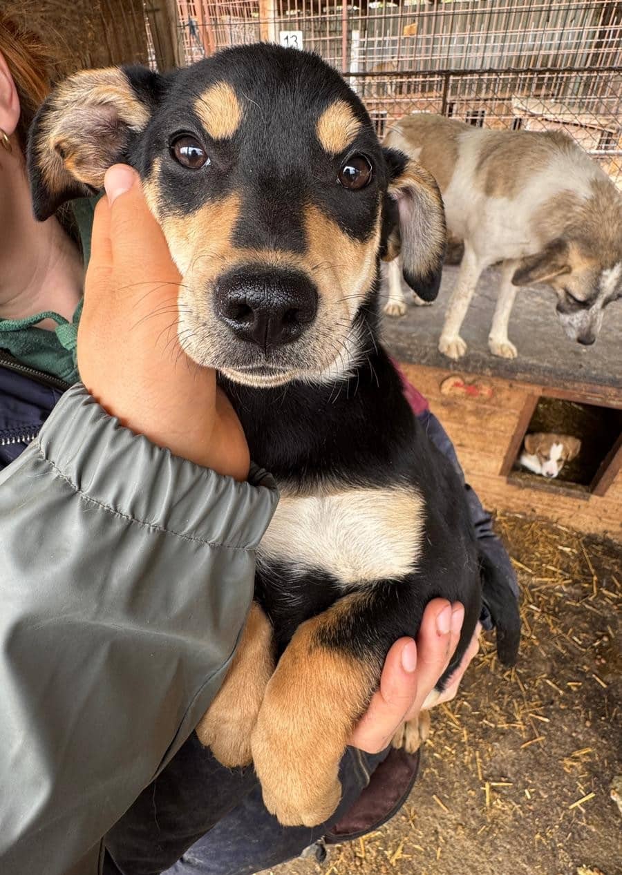 MAILY ist ein zuckersüßes, kleines Welpenmädchen. Sie sitzt mit acht weiteren Welpen und einer fremden Welpenmama in einem kleinen Kennel. Altersentsprechend ist MAILY neugierig, zutraulich, verschmust, welpentypisch und aufgeweckt. Wir konnten sie gut hochheben und überall anfassen und mit den Welpen in ihrem Kennel ist MAILY verträglich und verspielt. Sie hat einen Knubbel am Bauch, wahrscheinlich ein Nabelbruch. Wir haben es der zuständigen Tierärztin gemeldet. MAILY hat kurze Beinchen wie ein Dackel und wird wahrscheinlich nicht allzu groß werden.