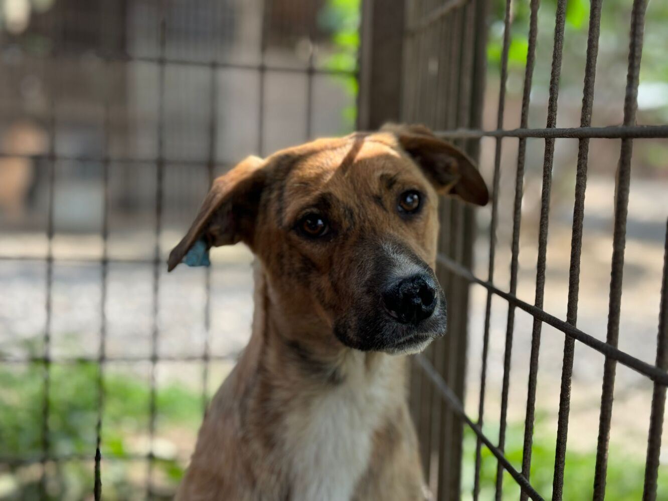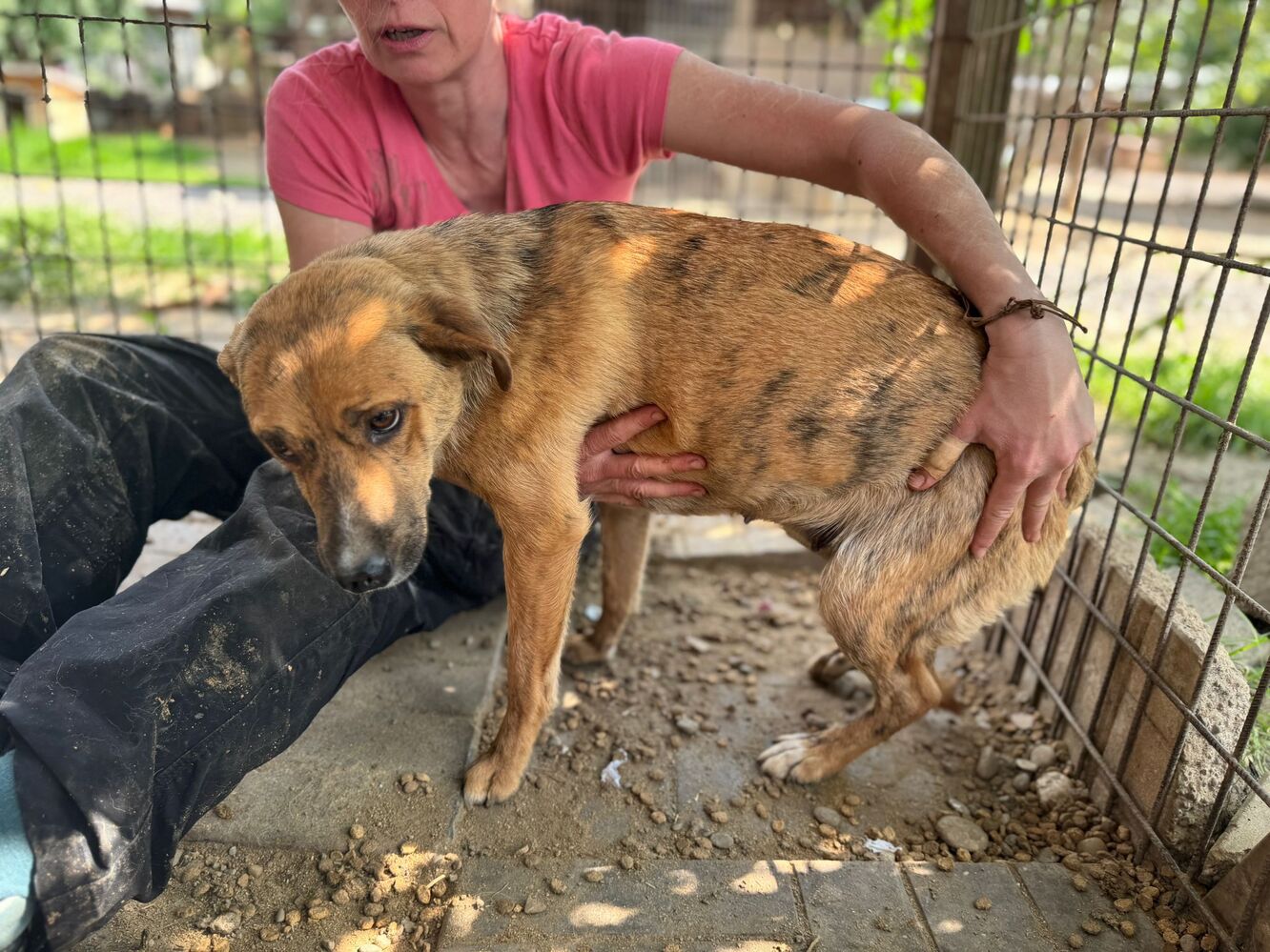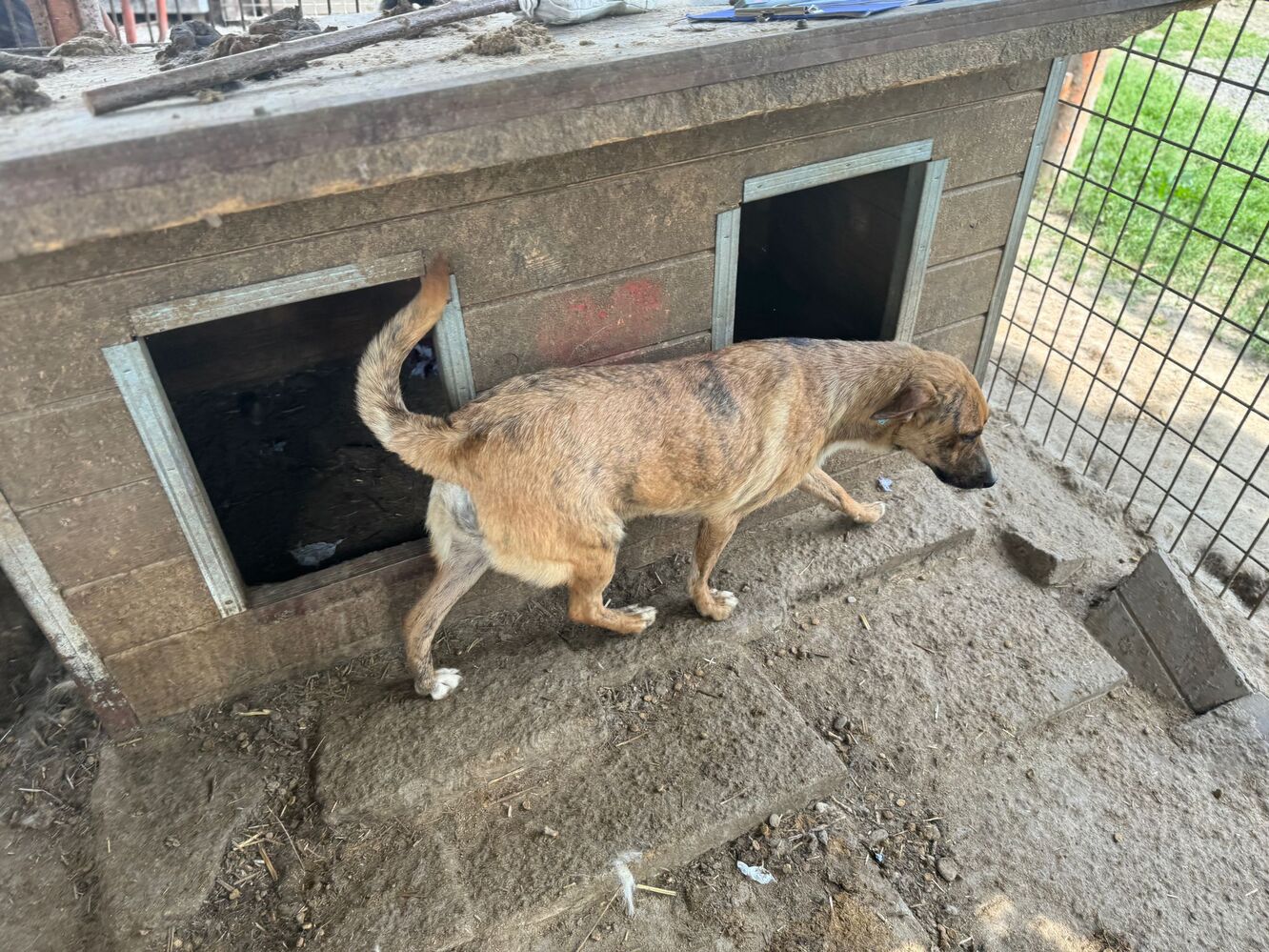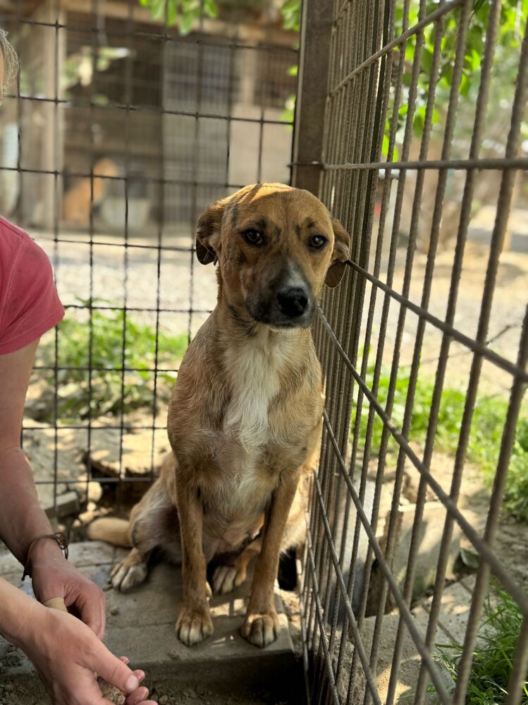 MAINSPRING ist nun 1 Jahr alt und hat die wichtigste Zeit ihres Lebens im Shelter verloren. Sie war anfangs zwar neugierig, wer wir sind, als sie aber merkte, dass wir sie im Fokus haben, wurde sie – wie andere Hunde in ihrem Kennel auch – unsicher und flüchtete hinter eine Hütte. Dort fixiert, was natürlich beängstigend auf die Hunde wirkt, konnten wir sie aber problemlos streicheln und man spürte, wie erleichtert sie darüber war. Diese Streicheleinheiten halfen der wirklich wunderschönen und sehr lieben Hündin dabei, aufzutauen, und sie konnte dann unsere Zuwendungen auch genießen. Seit Welpe ist sie in Bucov, hatte damals leider keine guten Bilder bekommen, und sollte nun endlich gesehen werden und eine Chance bekommen. Sie ist natürlich etwas schüchtern, aber mit Zeit taut sie sicher gut auf. Eine liebe und gut verträgliche Hündin.