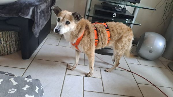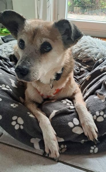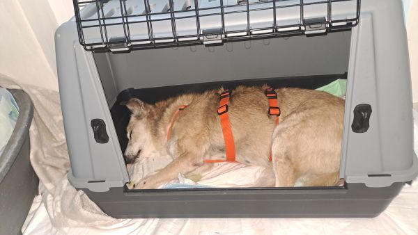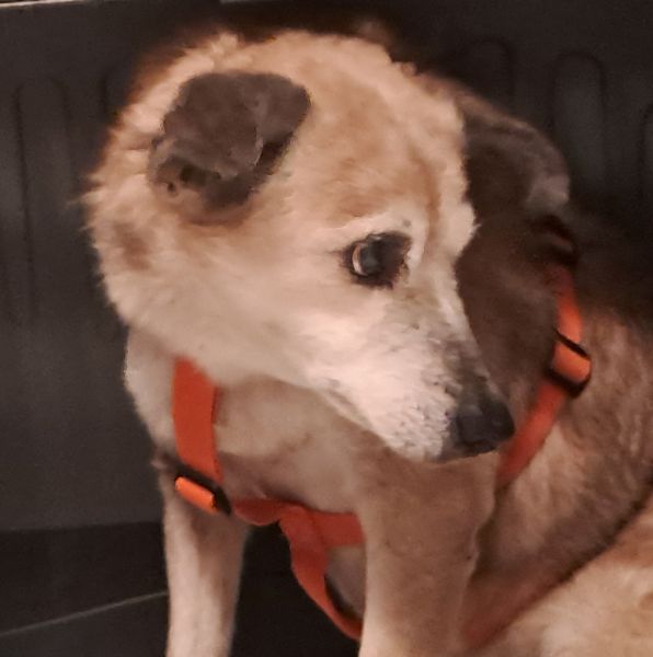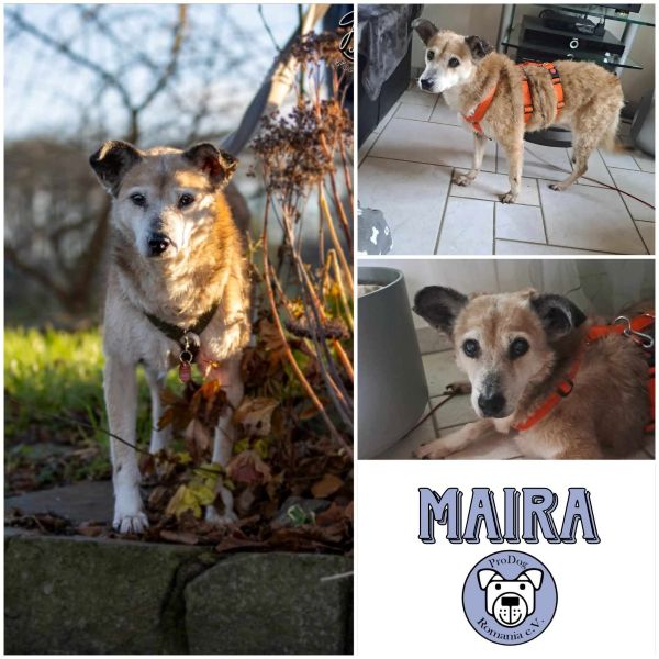 Maira kam Ende Oktober 2024 mit bald 12 Jahren nach 3,5 Jahren im Shelter Baile als Gnadenplatzhündin auf ihre Pflegestelle. Sie hatte eine Wunde am rechten Vorderlauf. Sie wurde beschrieben als ruhige ältere Hündin, die mehr oder weniger anfassbar war, es aber nicht genießen konnte.