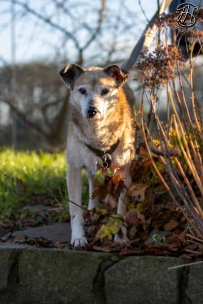 Damit kommen wir zu schrullig und stur: wie so manche Senioren hat Maira ihren Kopf: manchmal geht sie begeistert Gassi, manchmal hat sie keine Lust. Sie weiß meistens, was man von ihr will, hinterfragt aber, ob man es wirklich ernst meint.