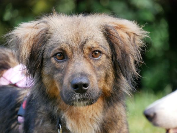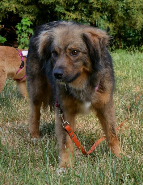 Maire, eine unkomplizierte, freundliche Hündin hat sich hier sofort ins Rudel eingefügt. Beim Kennenlernen völlig unproblematisch, deeskalierend kam sie selbst mit der oft erst mal bürstigen Langzeitpflegi zurecht.