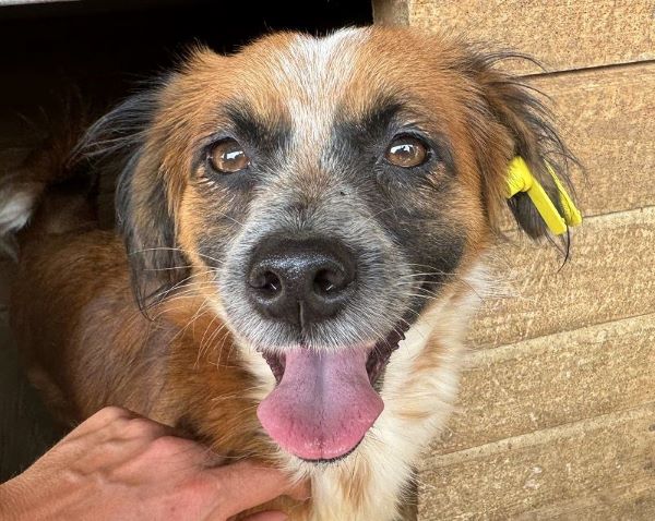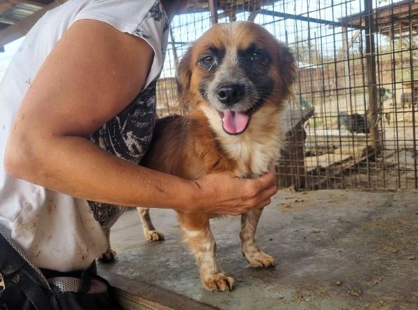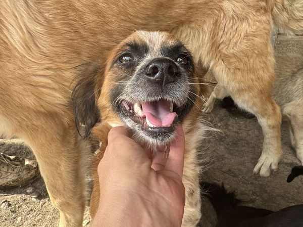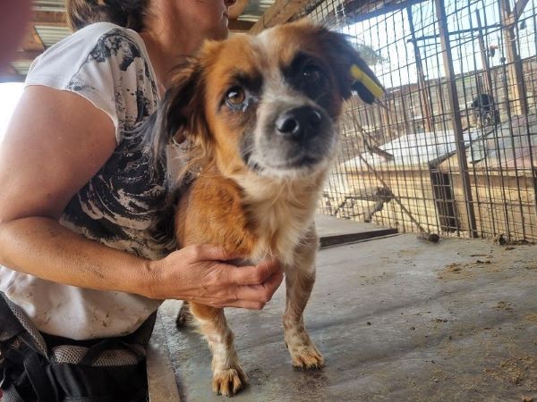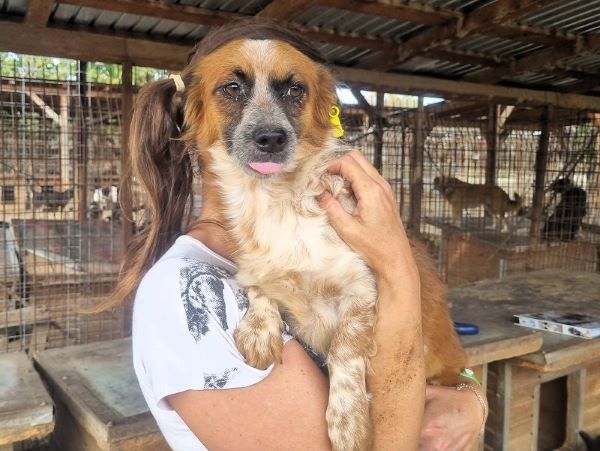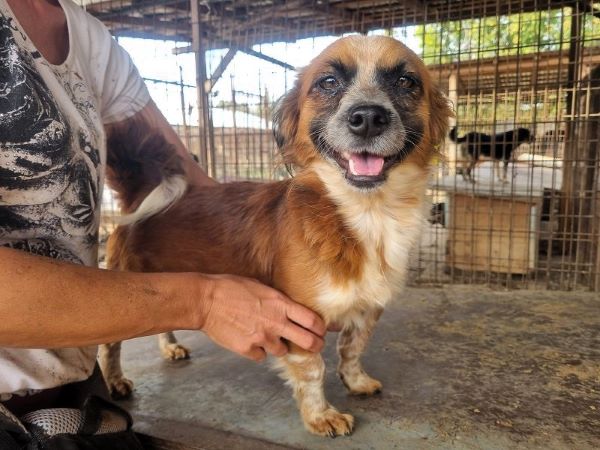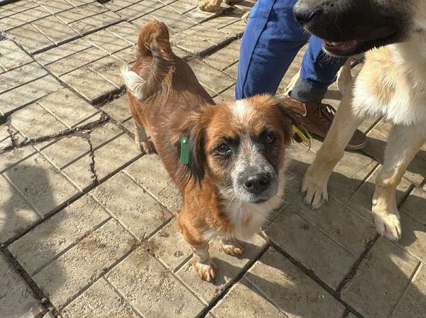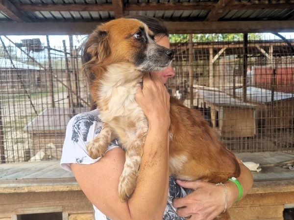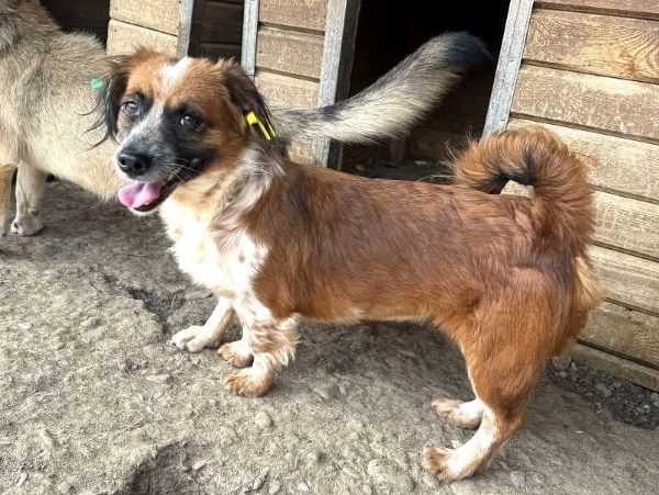 Die kleine MAITAL fiel mit ihrer außergewöhnlichen Fellfärbung direkt auf. Ihre hellbraun getupften Pfoten verlaufen über die weiße Brust bis zu ihrem zarten Gesicht mit schwarzen Nuancen. Dazu hat sie eine lustige Ringelrute mit weißer Spitze die sie stets freundlich wedelnd über ihrem Rücken trägt. Ihren kleinen Schlappohren sind schwarz gefärbt und mit feinen, längeren Haaren bestückt. Das sie so hübsch ist, weiß sie offensichtlich, denn sie hat sich gerne zum Fotoshooting auf das Hüttendach heben lassen und sich von ihrer besten Seite gezeigt. MAITAL läuft frei und offen in ihrer Gruppe im Zwinger umher und ist im gemischten Rudel sehr verträglich. Trotz ihrer geringen Körpergröße ist sie aktiv und aufmerksam und war stets in unserer Nähe. Die mitgebrachten Leckerchen nahm sie gerne an, damit hat sie die besten Voraussetzungen um das große Hunde ABC bei ihrer zukünftigen Familie zu lernen.