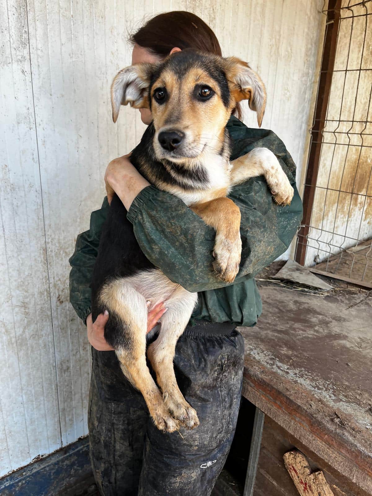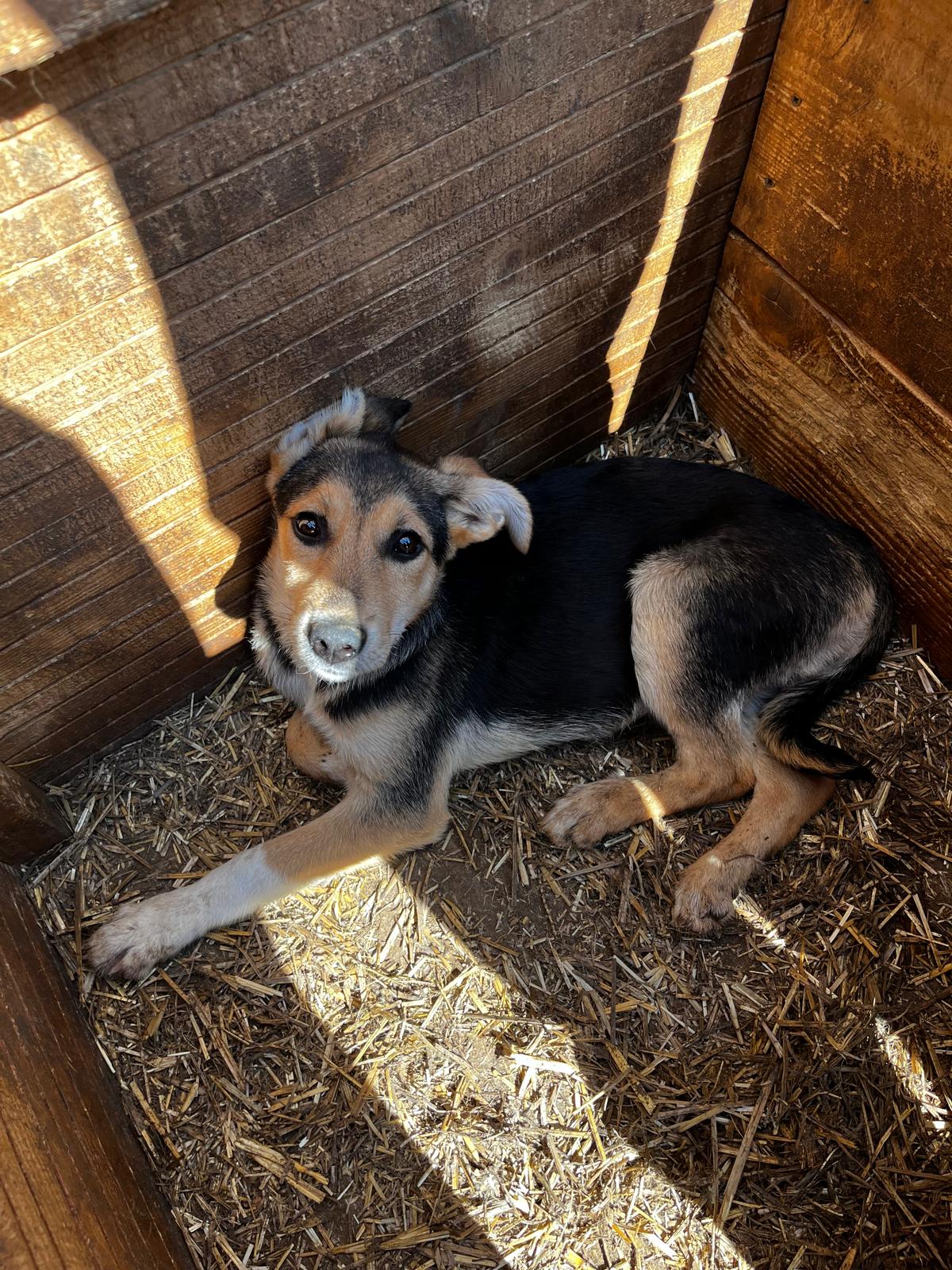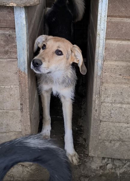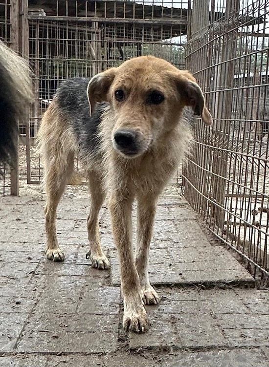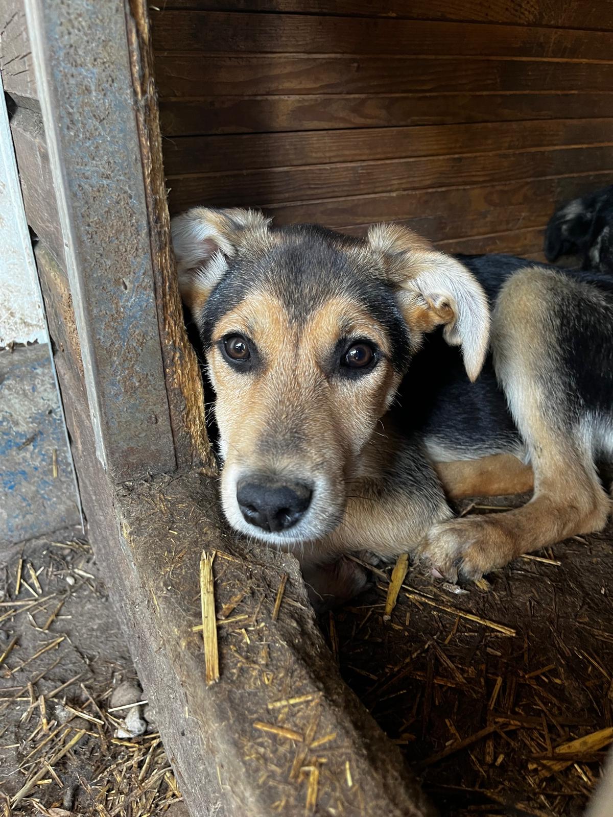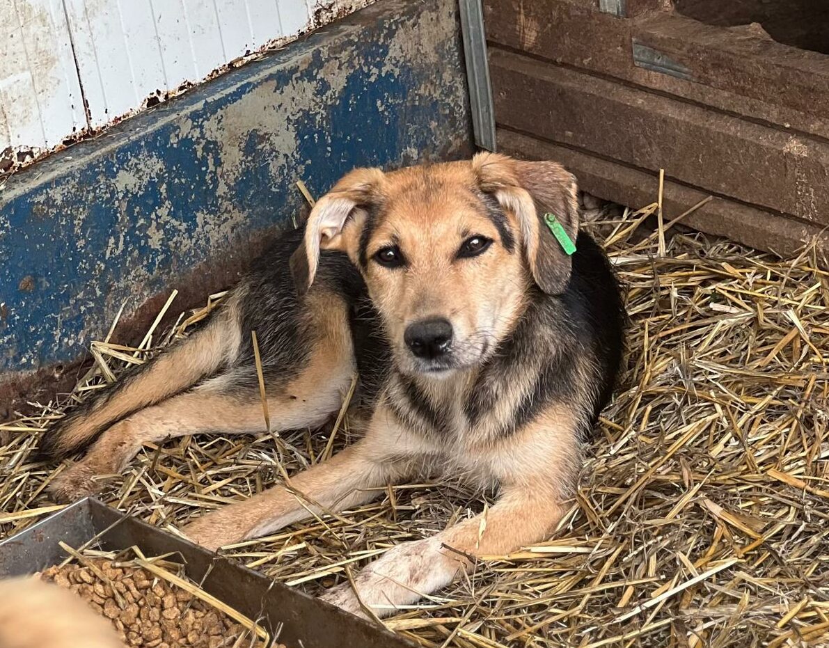 MAITI hat uns zum Schmunzeln gebracht. Sie war etwas unsicher im direkten Kontakt mit uns, aber neugierig genug, um uns aus nächster Nähe zu beobachten. Hierfür kroch sie direkt neben uns unter einen Wagen. So konnte sie uns in Ruhe zuschauen, was wir in ihrem Kennel so machen, ohne von den anderen Junghunden überrannt zu werden. Unter diesem Wagen, der ihr sicherlich auch Schutz gab, konnten wir MAITI vorsichtig am Kopf streicheln und sie nahm gerne unsere Leckerchen. Man merkt ihr aber an, dass sie den Kontakt mit Menschen nicht kennt. Woher auch? MAITI sollte jetzt zeitnah ausreisen, damit sich ihre Unsicherheit nicht verstärkt. Ein netter Ersthund würde ihr bei der Eingewöhnung sicher helfen. MAITI sitzt mit 13 weiteren Junghunden in einem Kennel und war verträglich.