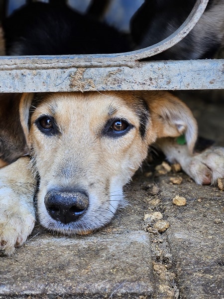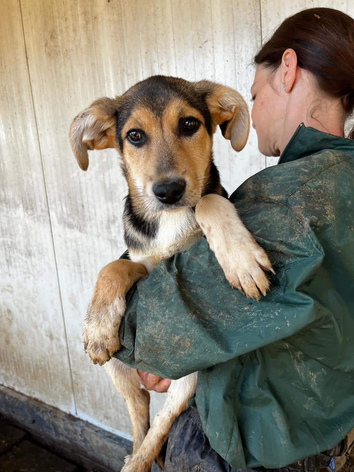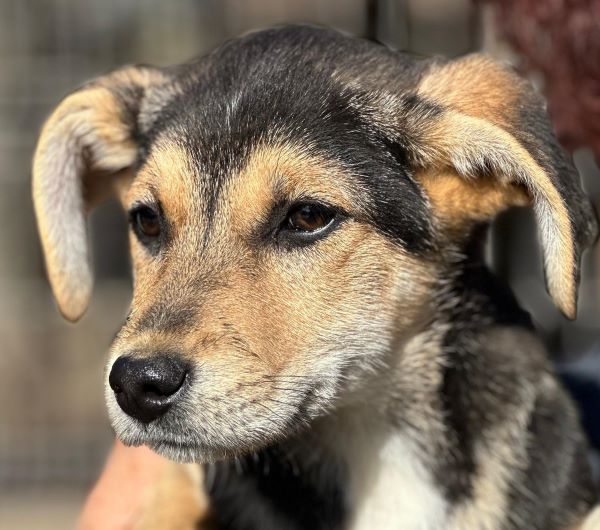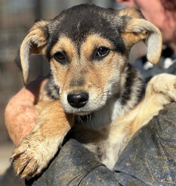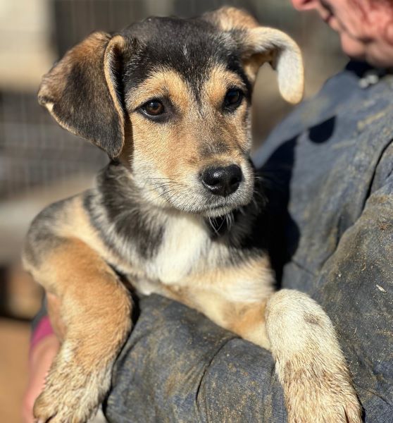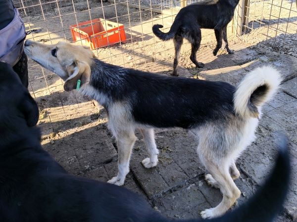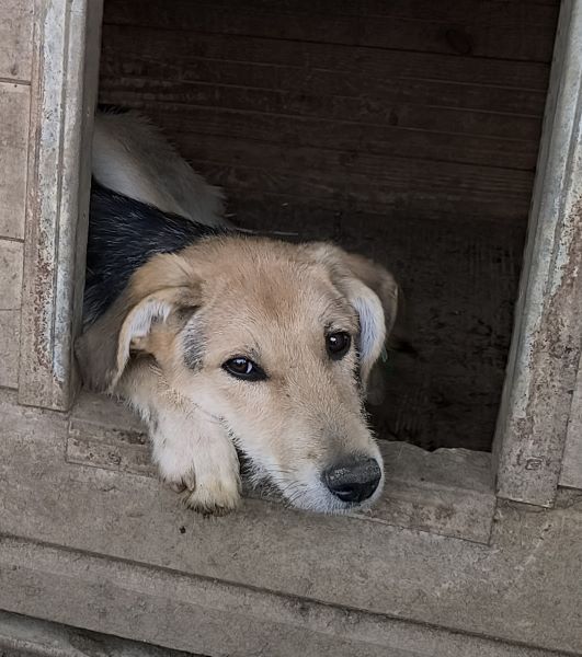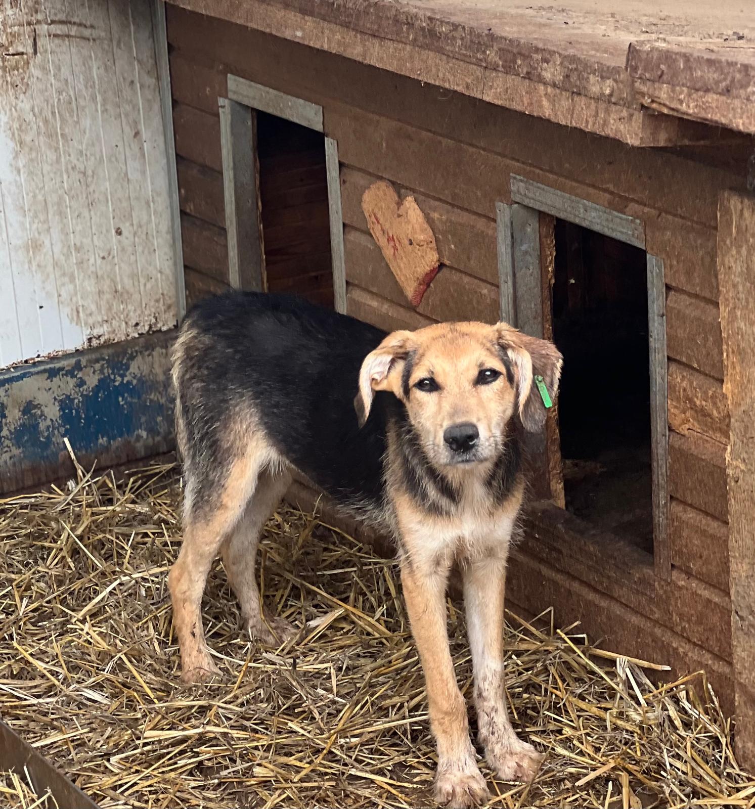 MAITI hat uns zum Schmunzeln gebracht. Sie war etwas unsicher im direkten Kontakt mit uns, aber neugierig genug, um uns aus nächster Nähe zu beobachten. Hierfür kroch sie direkt neben uns unter einen Wagen. So konnte sie uns in Ruhe zuschauen, was wir in ihrem Kennel so machen, ohne von den anderen Junghunden überrannt zu werden. Unter diesem Wagen, der ihr sicherlich auch Schutz gab, konnten wir MAITI vorsichtig am Kopf streicheln und sie nahm gerne unsere Leckerchen. Man merkt ihr aber an, dass sie den Kontakt mit Menschen nicht kennt. Woher auch? MAITI sollte jetzt zeitnah ausreisen, damit sich ihre Unsicherheit nicht verstärkt. Ein netter Ersthund würde ihr bei der Eingewöhnung sicher helfen. MAITI sitzt mit 13 weiteren Junghunden in einem Kennel und war verträglich.