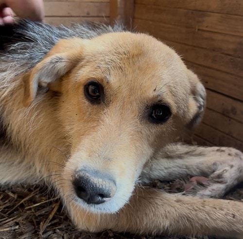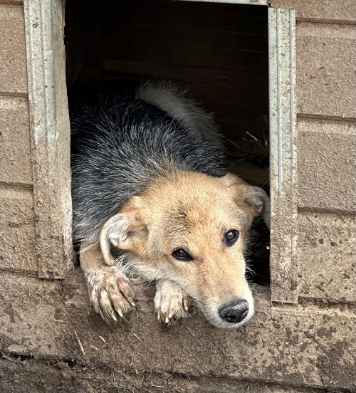 Maiti ist weiterhin neugierig, aber sehr zurückhaltend und beobachtete uns eher aus der Ferne. Sie nahm gerne unsere Leckerlies aus der Hand und ließ sich in der Hütte streicheln. Maiti taut sicherlich in einer ruhigen Umgebung schnell auf und lernt den Menschen richtig zu vertrauen. Mit ihren Kennelmitbewohnern ist sie sehr verträglich.