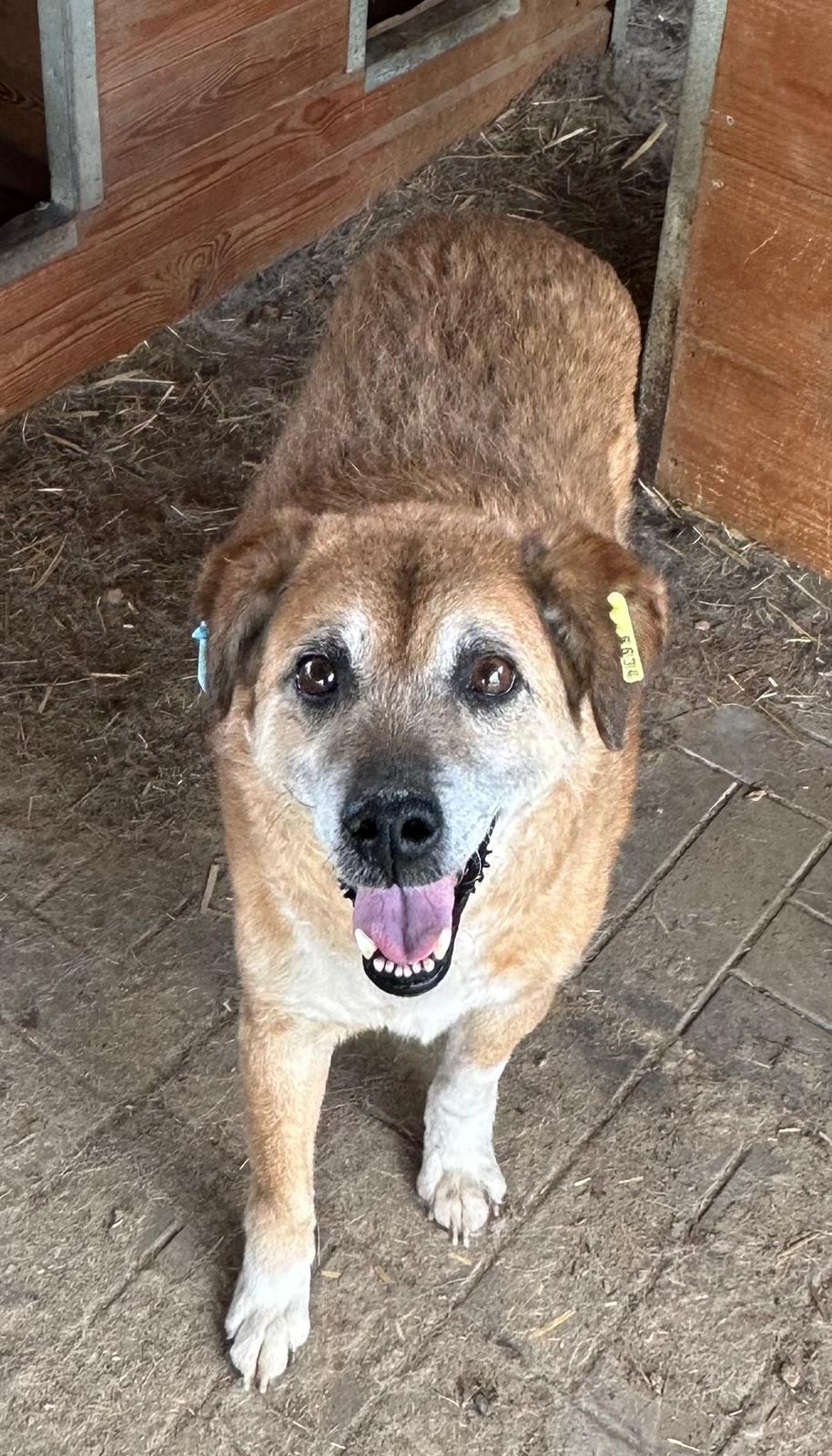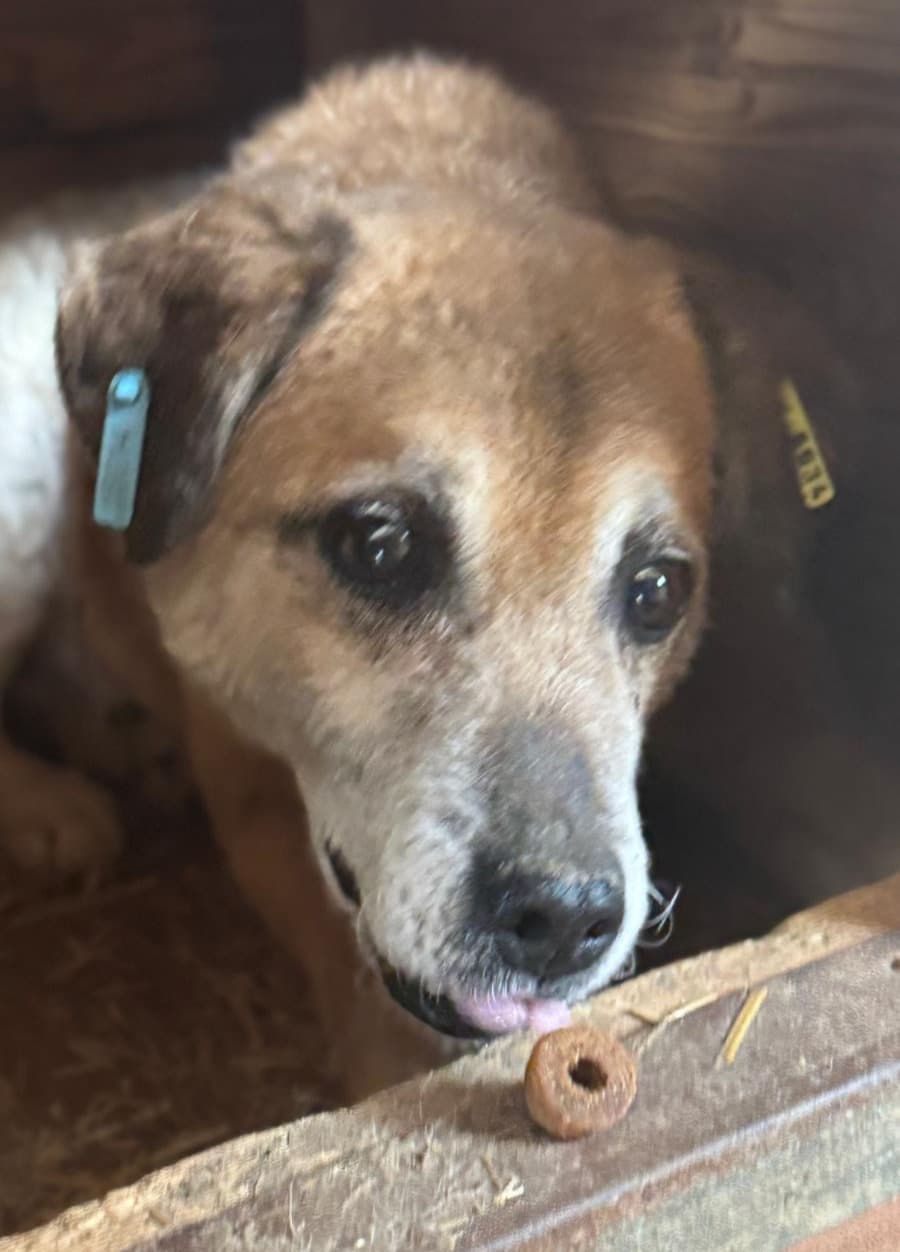 MAJARA machte einen sehr verwirrten Eindruck auf uns, evtl. hat sie Probleme mit den Augen oder beginnender Demenz. Sicher können wir es nicht sagen, jedoch war sie bei unserem Besuch erst nur in der Hütte. Sie nahm dort unsere Leckerlies aus der Hand, bellte aber und drohte auch einmal, als wir uns ihr annähern wollten. Dann nahm MAJARA wieder Leckerlies und bellte weiter, auch ohne Annäherungsversuch unsererseits. Wir konnten sie daher nicht anfassen. Zwischendurch nahm sie wieder Leckerlies aus der Hand. Es kann natürlich sein, dass sie aus der Unsicherheit uns Menschen gegenüber aufgebracht war, aber in Verbindung mit ihrem Alter erschien uns ihr Verhalten komisch und wir vermuten einen Auslöser wie Demenz dahinter. MAJARA sollte einen Platz bei (mit älteren/kranken) Hunden erfahrenen Menschen finden dürfen, wo man sich ihrer annimmt.