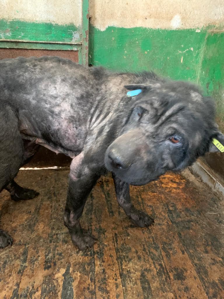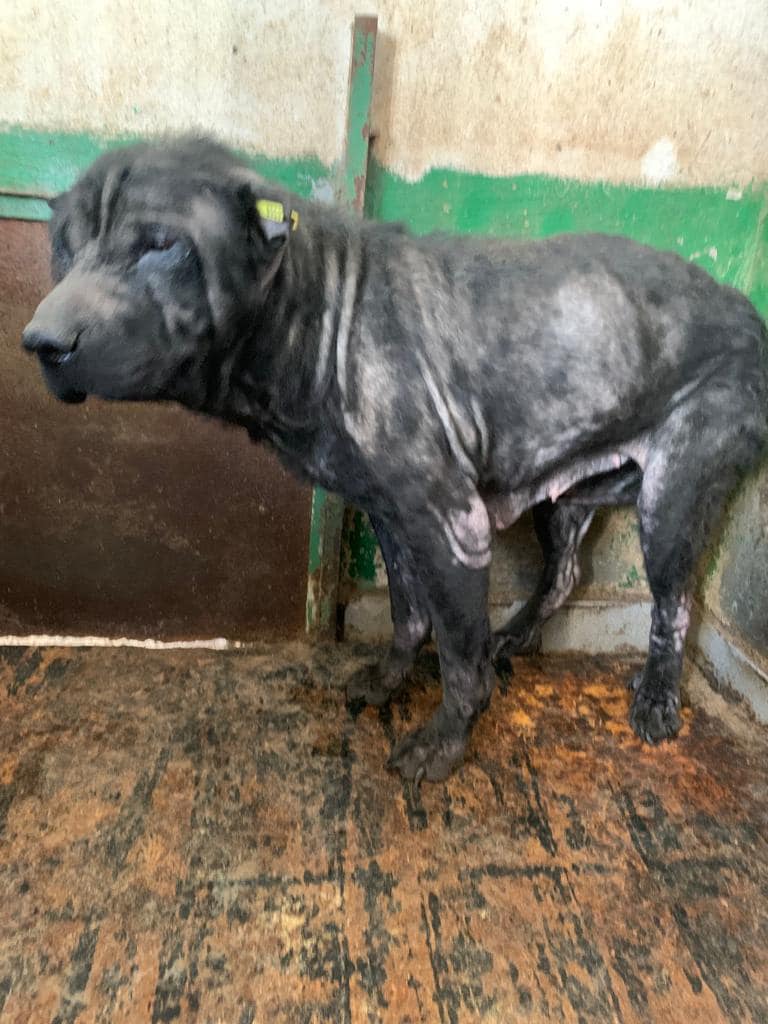 MAJOLINA kam im Sommer 2022 in einem sehr schlimmen Zustand ins Shelter Bucov. Gar kein Fell mehr, Staupe, völlig abgemagert.
