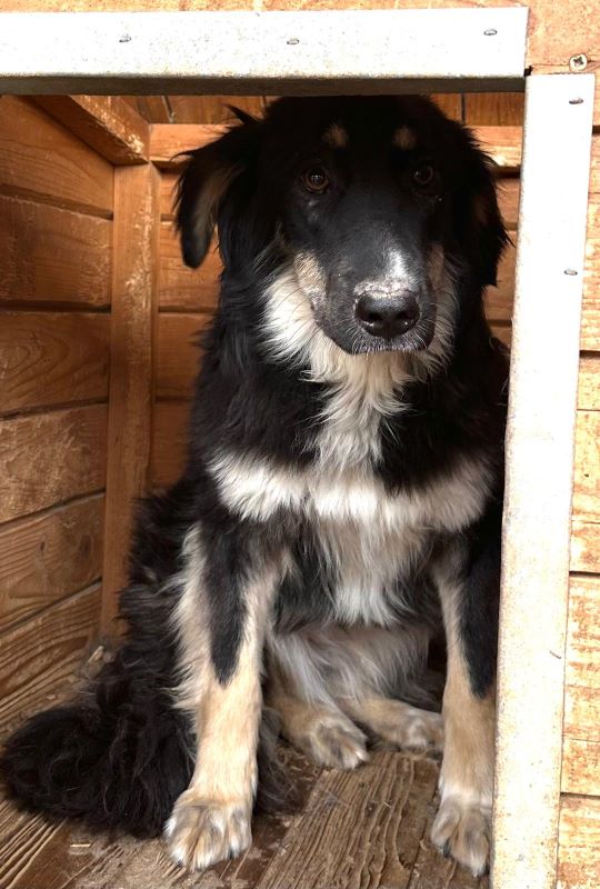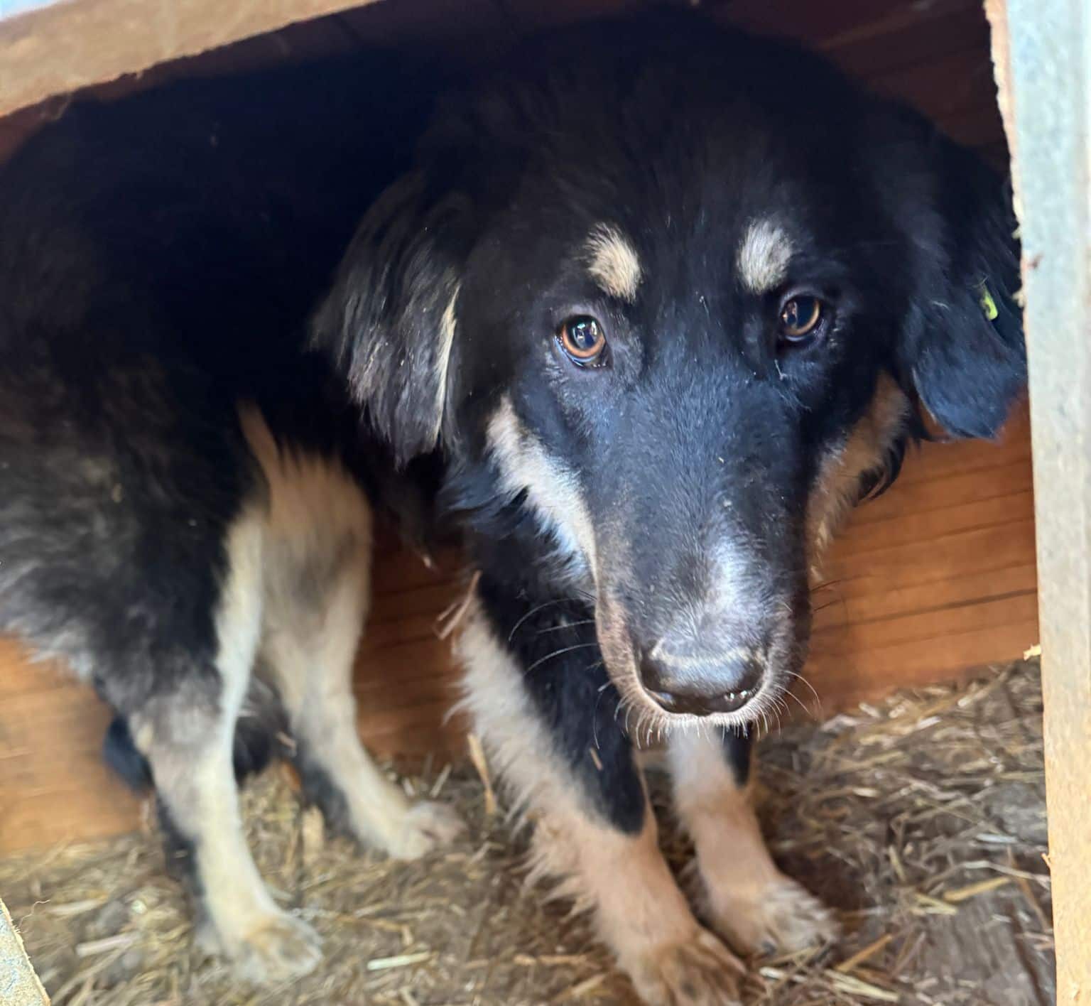 MALEIKA ist eine wunderschöne, noch junge Hündin, die bei unserem Besuch in ihrem sehr stressigen Kennel nur in der Hütte saß. Sie nahm dort unsere Leckerlies, wenn wir sie ihr hinlegten, und zeigte sich freundlich. Wir denken, dass sie Kontakt zu Menschen einfach nicht so kennt und daher noch schüchtern ist. Wenn wir sie anfassen wollten, wich sie zurück. Mit Artgenossen ist sie wahrscheinlich verträglich, zumindest konnten wir nichts Gegenteiliges beobachten.