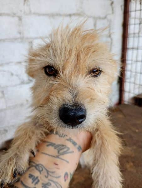 Diese bezaubernde und neugierige kleine Hündin ist noch recht neu im Shelter. Im Moment ist sie leider etwas zu dünn, da ihr der Stress im Shelter zu schaffen macht. Sie freut sich über Zuwendung, ist sehr anhänglich und lässt sich gerne und überall anfassen. Alterstypisch ist sie verspielt und lebhaft.