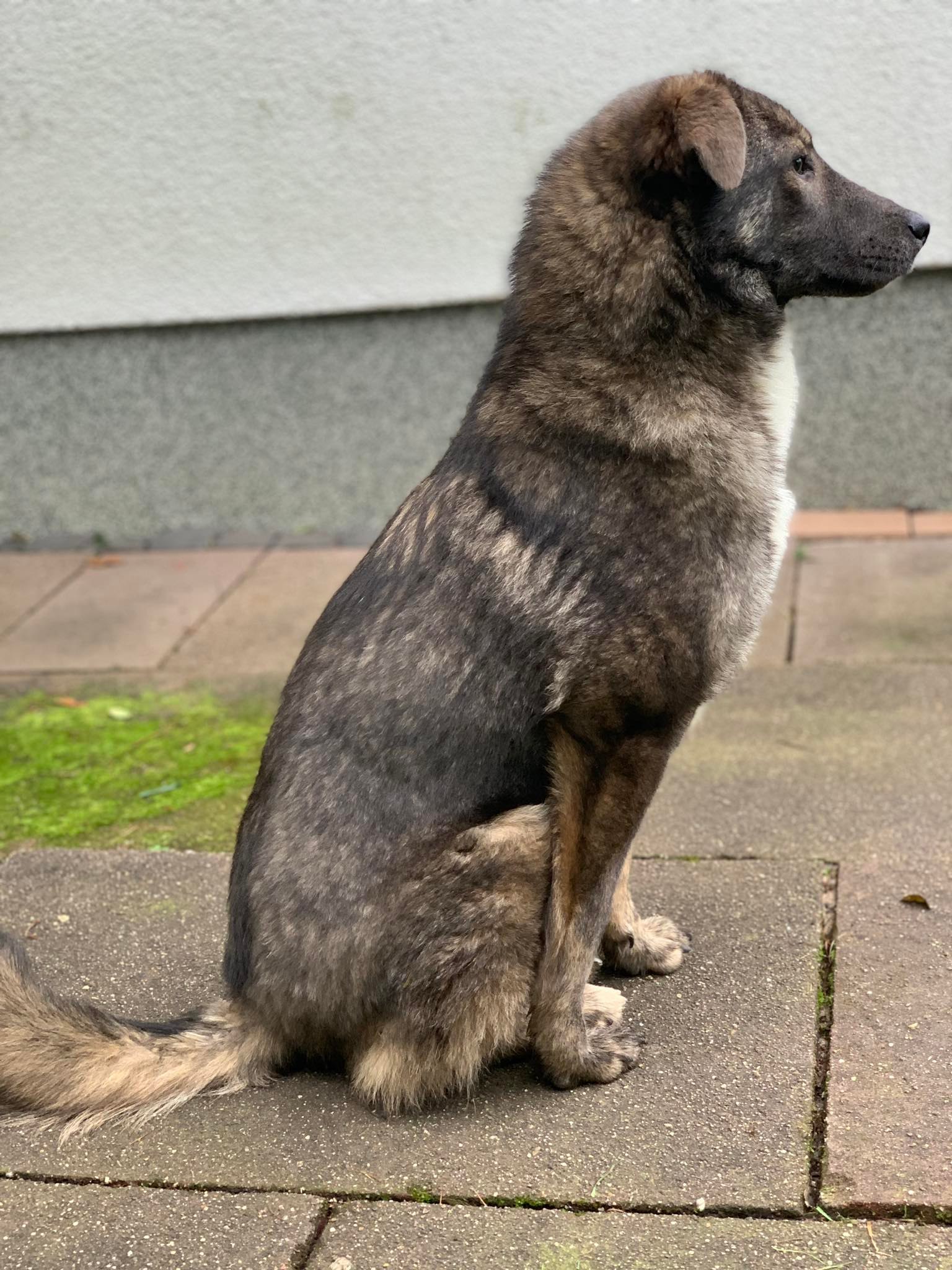 Malka ist Ende Dezember 2021 auf die Pflegestelle nach Mülheim an der Ruhr gereist und ist 50 cm und 16 kg pure Lebensfreude.