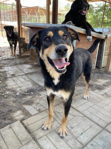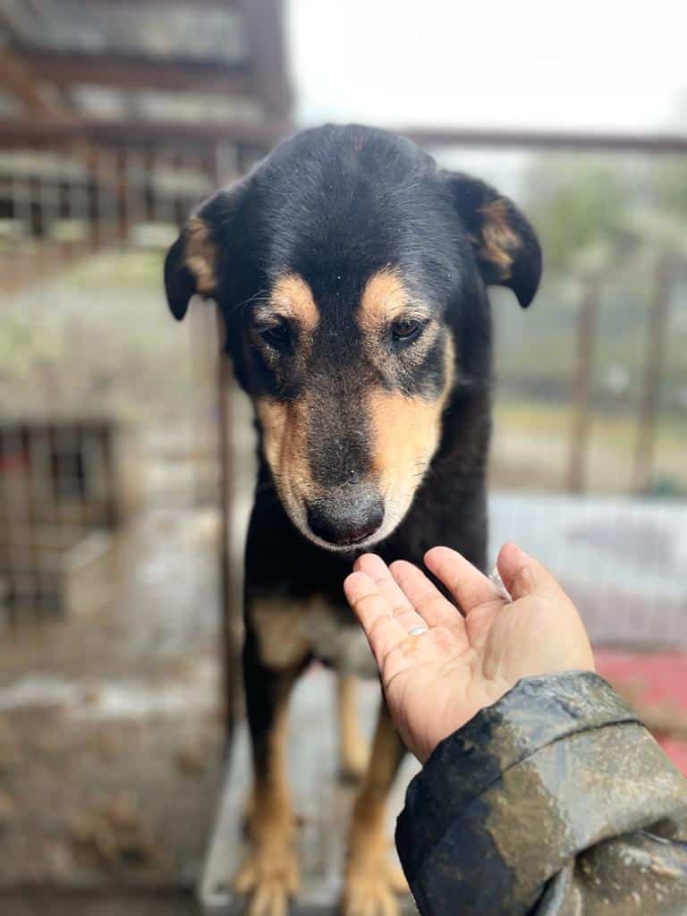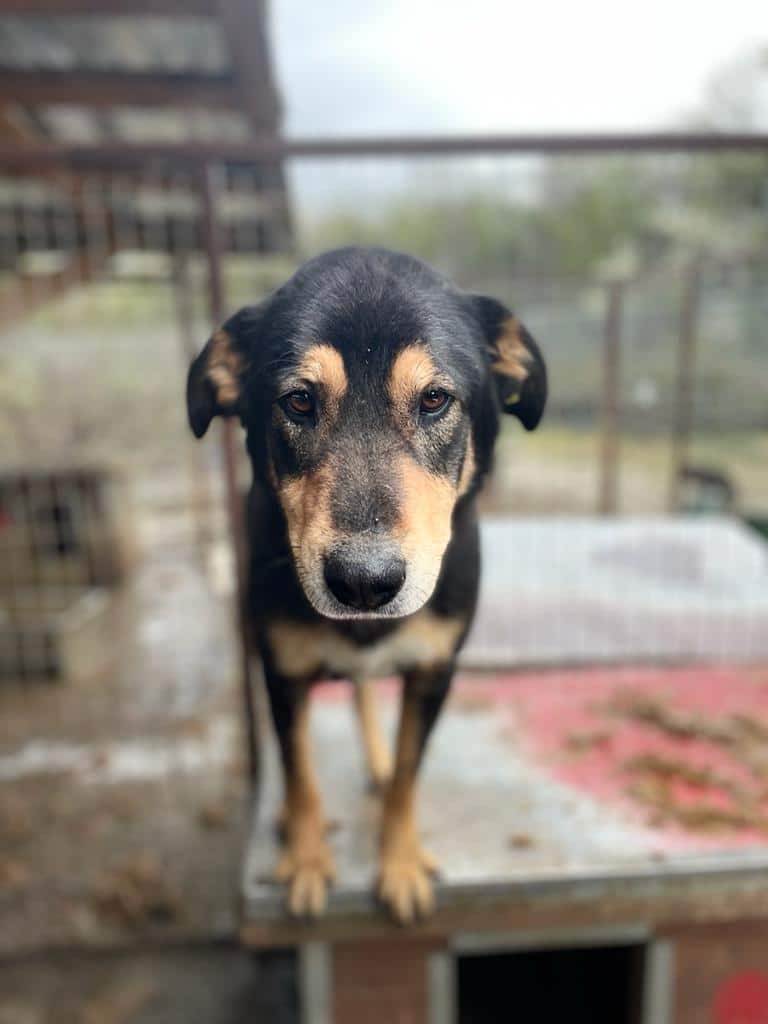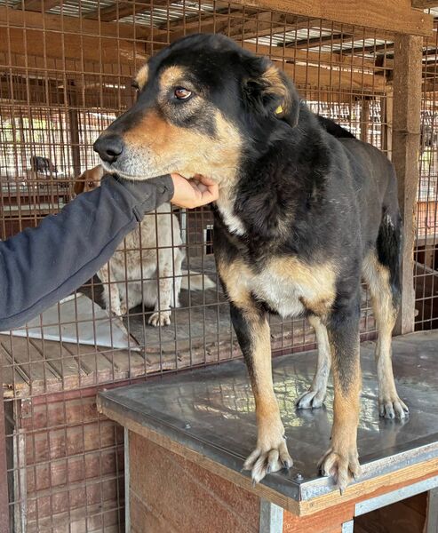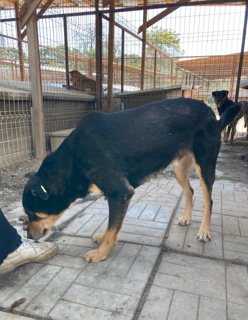Unser süßer MALOON freute sich sehr über den seltenen Besuch und die Abwechslung im sonst so tristen Shelteralltag. Der arme Bub sieht mitgenommen aus: Etwas zu dünn und eine verheilende Bisswunde im Nacken begrüßte er uns freundlich auf seinem Hüttendach. MALOON genoss die seltenen Streicheleinheiten und nahm gern die mitgebrachten Leckerlie. Seinen winzigen Kennel teilt er sich augenscheinlich verträglich mit einem weiteren Rüden, der bei unserer Anwesenheit ausschließlich in der Hütte lag. Ob MALOON seine Verletzung von seinem Kennelkollegen oder aber durch das Gitter von einem anderen Hund zugefügt wurde, wissen wir nicht. Wir hoffen für den lieben MALOON, dass er diesen für ihn so belastenden Ort schon bald hinter sich lassen und endlich in Geborgenheit ankommen darf. Er sehnt sich nach mehr und es macht uns sehr traurig, ihn wieder dort zurück lassen zu müssen… Die Enge und der Stress machen MALOON zu schaffen und er ist maßlos unterfordert. Wir wünschen ihm, dass er endlich gesehen wird.