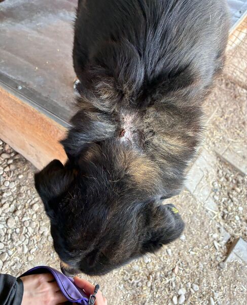 Große, verheilende Wunde / Narben im Nacken, etwas dünn (4/25)