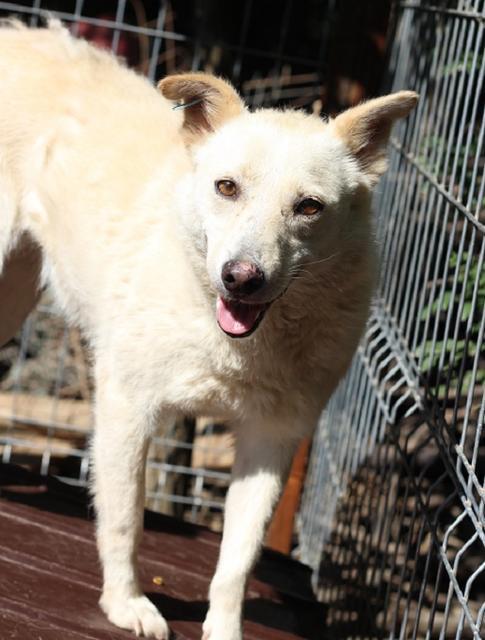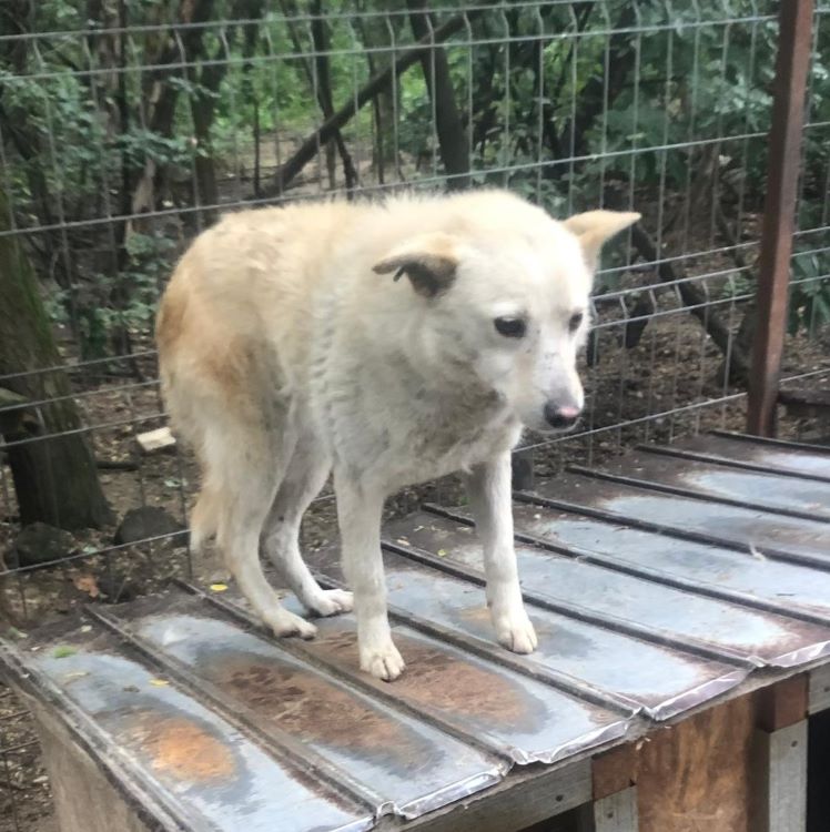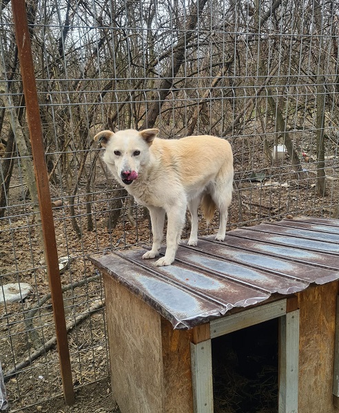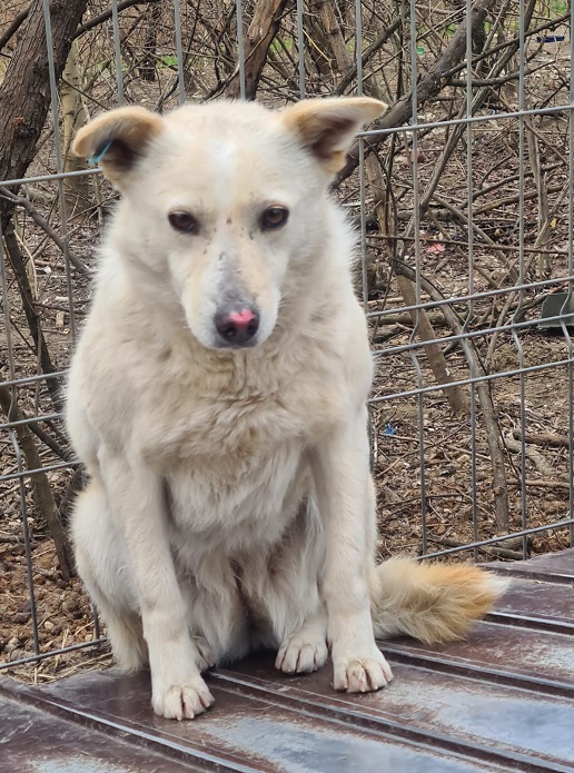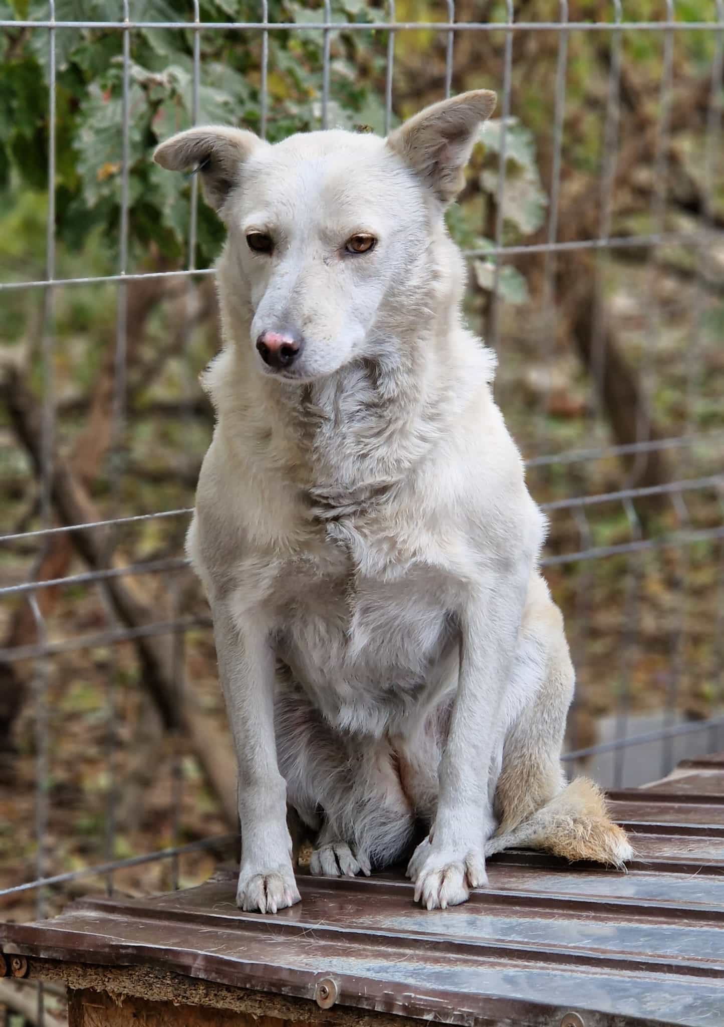 MALOUK reagierte sehr ängstlich auf unserer Besuch. Sie nahm weder Futter, noch ließ sie sich anfassen. Sie sitzt im letzten Kennel, wo sich nie jemand hinverirrt. Man merkt ihr an, dass sie keinen Kontakt zu Menschen mehr kennt.