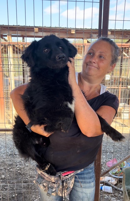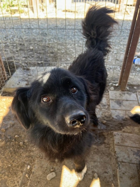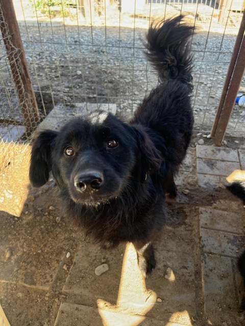 Dieser nette Hundebub hat uns erst mal einen Schrecken eingejagt, denn wir fanden ihn außerhalb seines Kennels. Er kam dann glücklicherweise direkt schwanzwedelnd auf die Volontärin zugelaufen und ließ sich problemlos hochheben und zurück in seinen Kennel tragen. Dort ließ er sich ebenfalls überall streicheln. Allerdings wirkte er im Kennel etwas angespannter als außerhalb, was wahrscheinlich an einer dominanten Hündin in seiner Hundegruppe lag. Denn seine Gruppe sitzt erst seit Kurzem zusammen und eine Hündin kontrolliert zumindest in unserer Anwesenheit jeden Schritt der anderen. Auch er wurde von ihr kurz reglementiert, als er sich zu weit vorwagte, daher sitzt er wahrscheinlich auch immer vorm Kenneltor. Um keinen Streit auszulösen, verzichteten wir auf Leckerlies. Mit den anderen Hunden schien er verträglich zu sein. Wir wünschen uns sehr, dass dieser freundliche kleine Rüde schon bald von seinen Menschen gesehen wird und ausreisen darf.