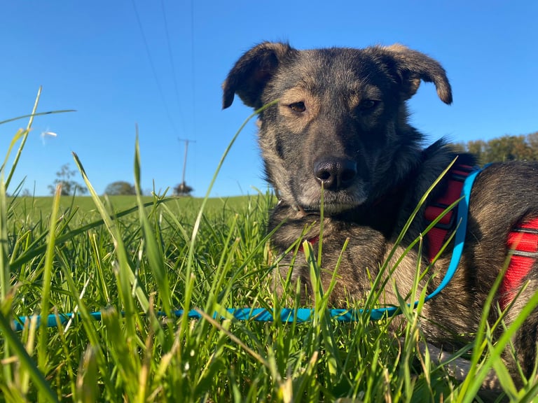 Sie läuft schon sehr schön an der Leine und liebt ihre Ausflüge in der Natur.