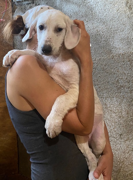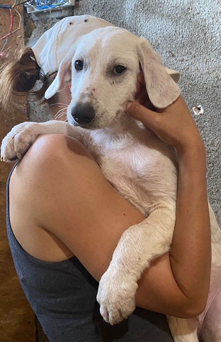 Der zurückhaltend MANDU ist sehr verträglich und ließ sich von uns auf den Arm nehmen. Doch so recht wusste er noch nicht, was er davon halten sollte. MANDU wird etwas Zeit brauchen, um aufzutauen, aber mit geduldigen Menschen an seiner Seite wird das kein Problem sein. Mit seinen Geschwistern zeigte er sich welpentypisch verspielt.