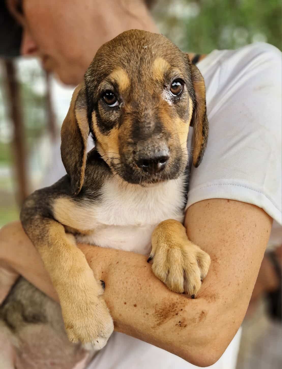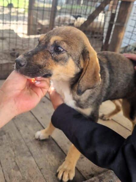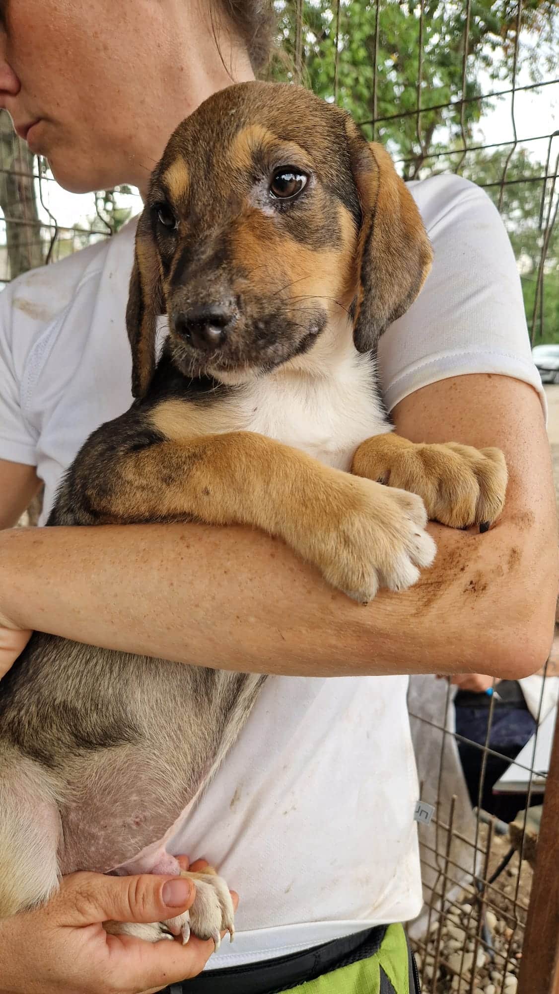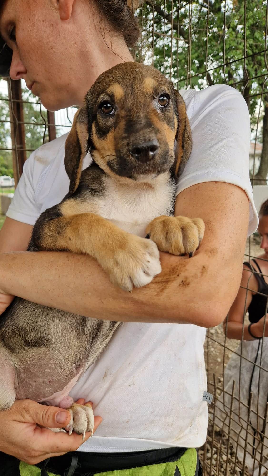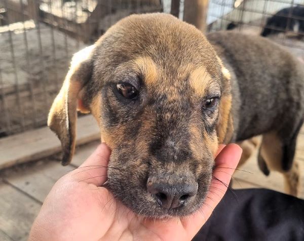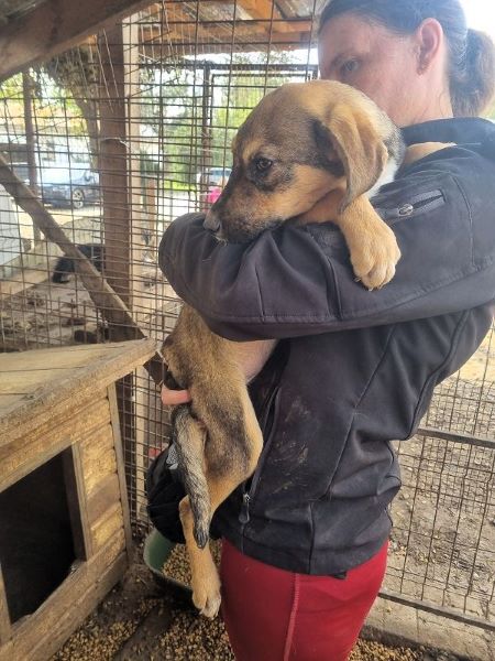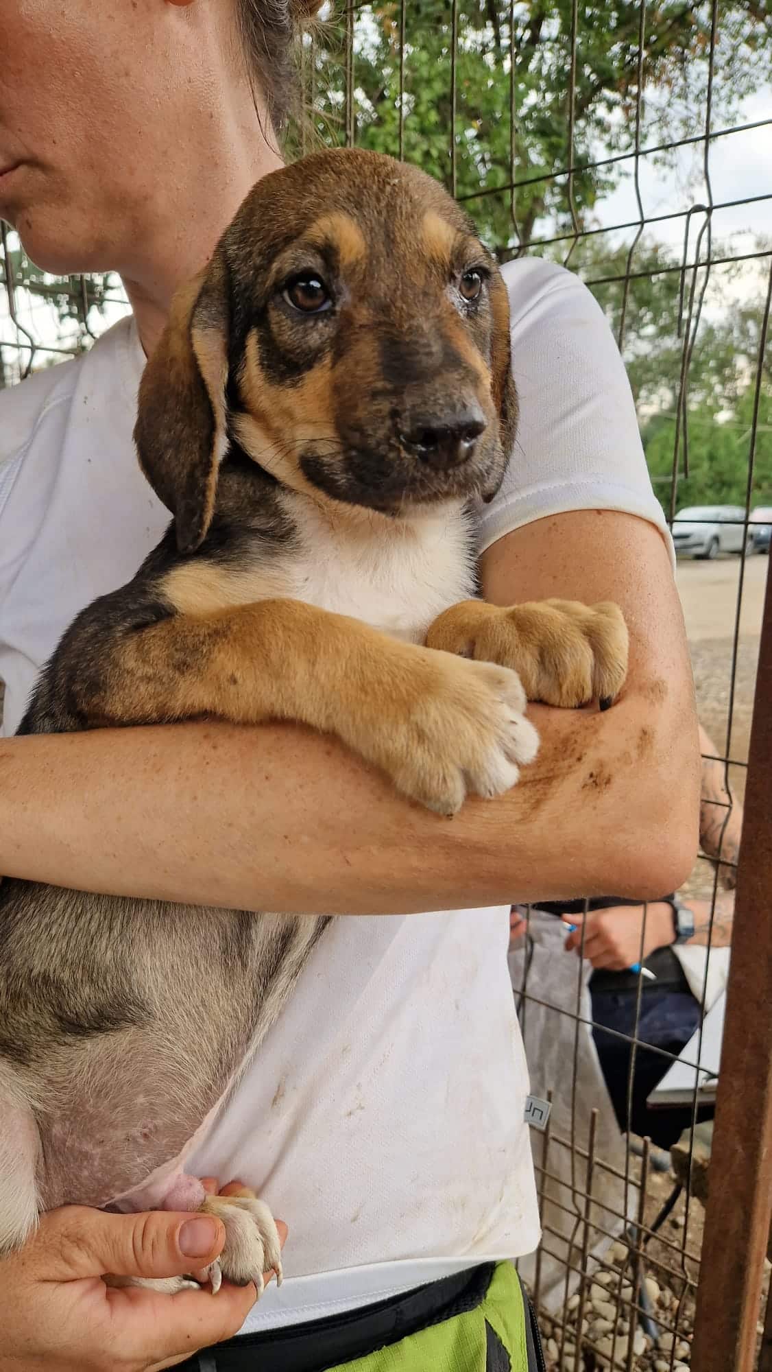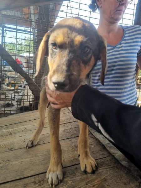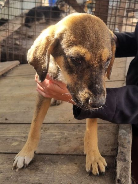 MANFRED lebt ebenfalls in einem winzigen Zwinger zusammen mit seiner Mutter und seinen Geschwistern. Wir konnten nur maximal zu zweit rein gehen, weil sich sonst gar keiner mehr hätte bewegen können. So steht er tagtäglich im Matsch und wirklich austoben können sich die kleinen Racker auch nicht. Leider ist MANFRED´S Mama eine schüchterne Hündin, die bisher nicht viele gute Erfahrungen mit Menschen sammeln durfte, und so wird auch MANFRED schon unsicher. Nachdem wir ihn vom Arm runter ließen, weil wir alle Infos von ihm hatten, zog er sich sofort wieder hinter die Hütte zurück. Er sollte schnell ausreisen dürfen, damit er sich nicht aufgrund fehlender Begegnungen komplett scheu entwickelt. Sonst wird er wahrscheinlich nie mehr die Chance auf ein schönes Leben bekommen.