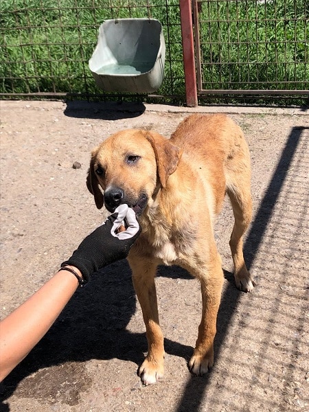 MANNO war auch diesmal wieder bei den Leckerchen ganz vorne mit dabei. Er nahm sie sehr gern aus der Hand und konnte nicht genug davon bekommen. Als wir aber aktiv auf ihn zugingen, wich er aus. MANNO sucht ein sehr erfahrenes Zuhause, idealerweise mit souveränem Ersthund.