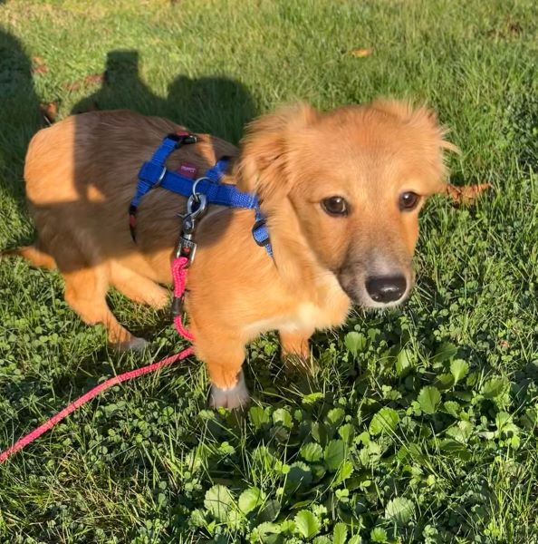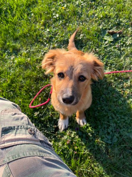 Die süße Mannu ist ein typisches Welpenmädchen – verspielt, neugierig und voller kleiner Streiche. Mit ihrem langen Körper und den niedlichen Dackelbeinchen erobert sie sofort alle Herzen. Mannu orientiert sich stark an ihrer Schwester Motte und entdeckt die Welt am liebsten an ihrer Seite. Noch ist sie etwas schüchtern im Umgang mit Menschen und weicht im direkten Kontakt zurück, aber sobald sie Vertrauen gefasst hat, genießt sie Streicheleinheiten sehr. Mit Leckerlis kann man sie leicht überzeugen, denn die liebt sie über alles.
