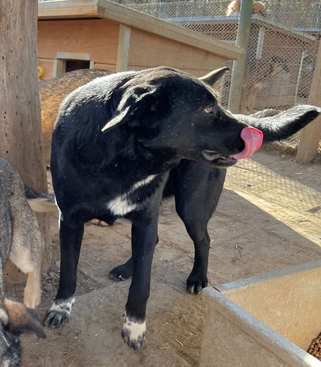 Der hübsche MANOLITO wartet bereits seit fast 3 langen Jahren im großen Shelter auf sein Glück. Bei unserem Besuch zeigte er sich sehr freundlich und interessiert: Immer wieder kam er aufgeregt und freudig ganz dicht heran, schnupperte an unseren Fingern, schleckte daran und ließ sich an der Schnute berühren. Doch ruck zuck war er auch immer wieder ein paar aufgeregte Schritte zurückgewichen, um sich die Situation noch einmal genauer anzusehen. Dieses Spielchen spielten er und seine Hundekumpel zu gern und brachten uns damit zum Lachen.