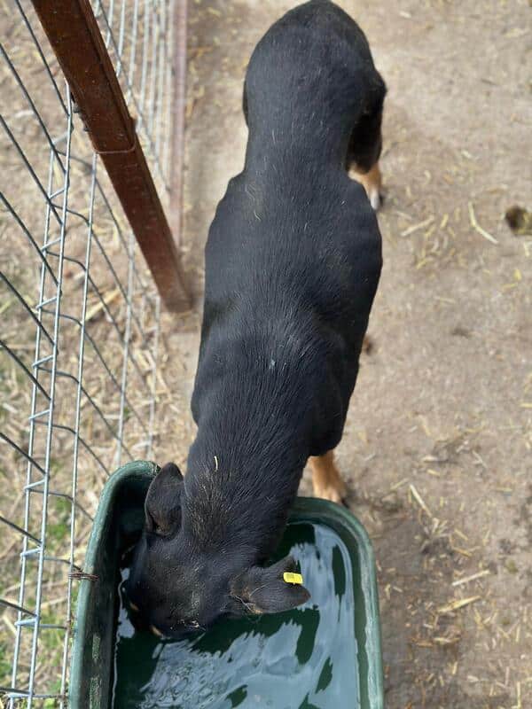 Diese Hündin hat es im Kennel definitiv nicht leicht. In unserer Gegenwart traute sie sich aus der Hütte, fraß gierig, trank minutenlang, machte Häufchen und Pippi. Welche Angst muss sie sonst stets haben, um das erledigen zu können.