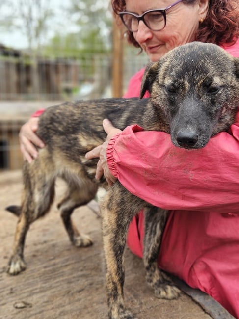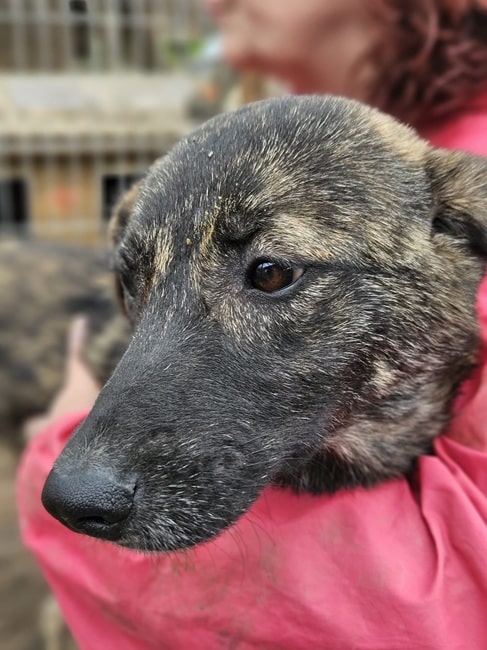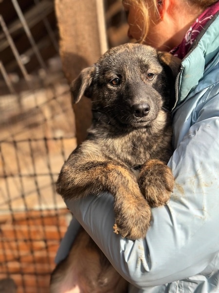 MARBLE beobachtete uns neugierig als wir in ihrem Kennel waren. Wir konnten sie gut streicheln und problemlos auf den Arm nehmen. Man merkt ihr aber an, dass sie bereits etwas unsicher ist. MARBLE sollte zeitnah ausreisen, damit sie positiven Kontakt zum Menschen kennenlernt und sich ihre Unsicherheit nicht verstärkt.