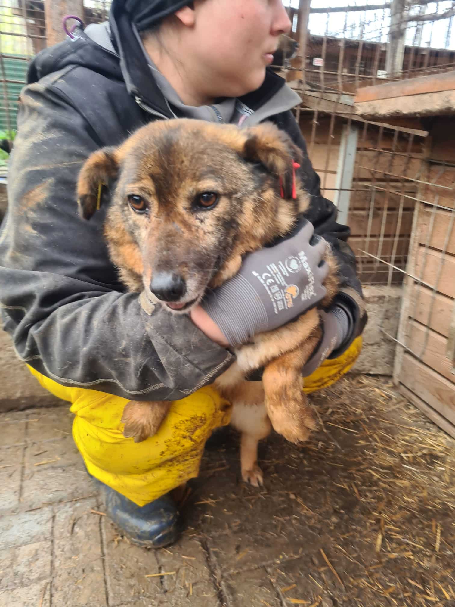 MARCELLA ist nicht anfassbar und drückte sich immer in eine Ecke. Sie braucht absolut erfahrene Menschen und mit souveränen Hunden zur Orientierung.