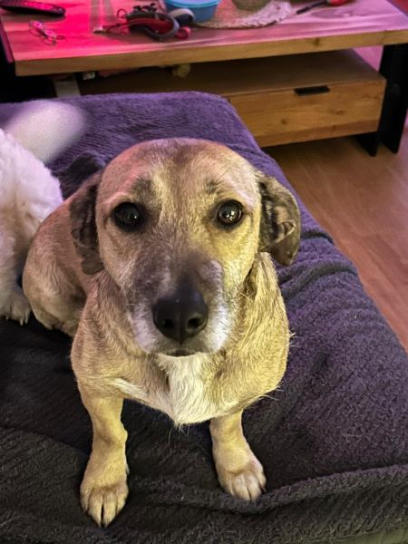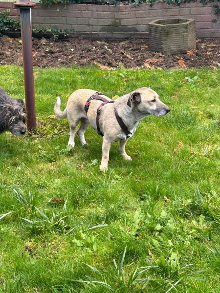 Maren ist seit November 2023 bei uns auf der Pflegestelle und ist eine sehr liebe Hündin. Wir sind total begeistert von ihrer tollen und ruhigen Art. Sie ist katzenverträglich, kommt mit anderen Hunden sehr gut klar, bleibt mit unseren Hunden auch 4-5 Stunden alleine zu Hause und mag das Autofahren.
