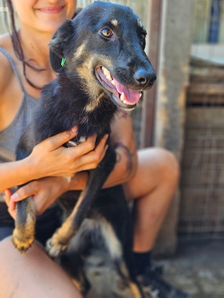 MARIBEL wächst zu einer verspielten Junghündin heran. Sie freute sich sehr über unseren Besuch und wir konnten sie gut streicheln. Diese Aufmerksamkeit war eine willkommene Abwechslung für MARIBEL in dem sonst so trostlosen Shelteralltag. Sie sitzt mit mindestens 13 weiteren Junghunden in einem Kennel und war verträglich.