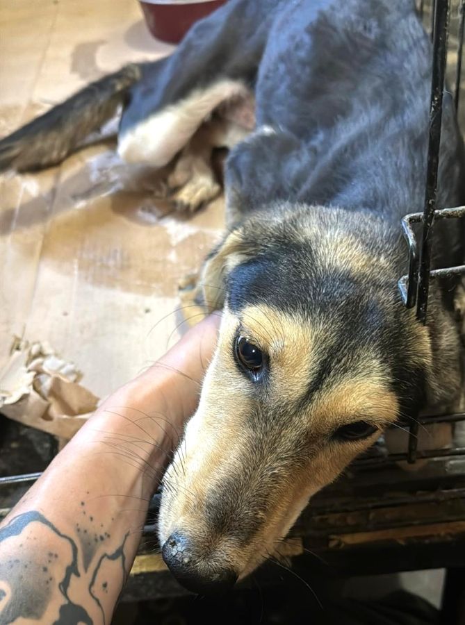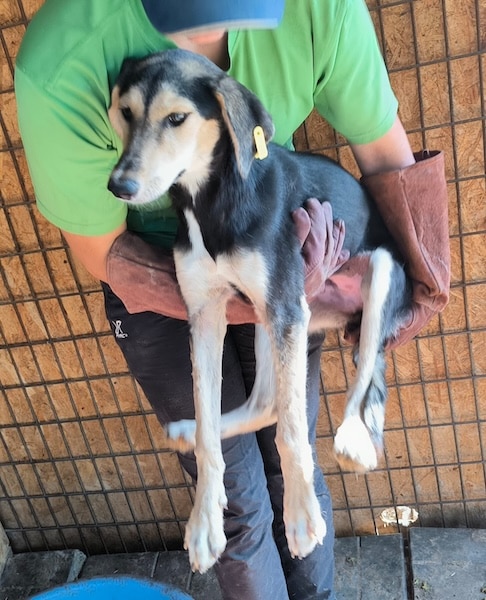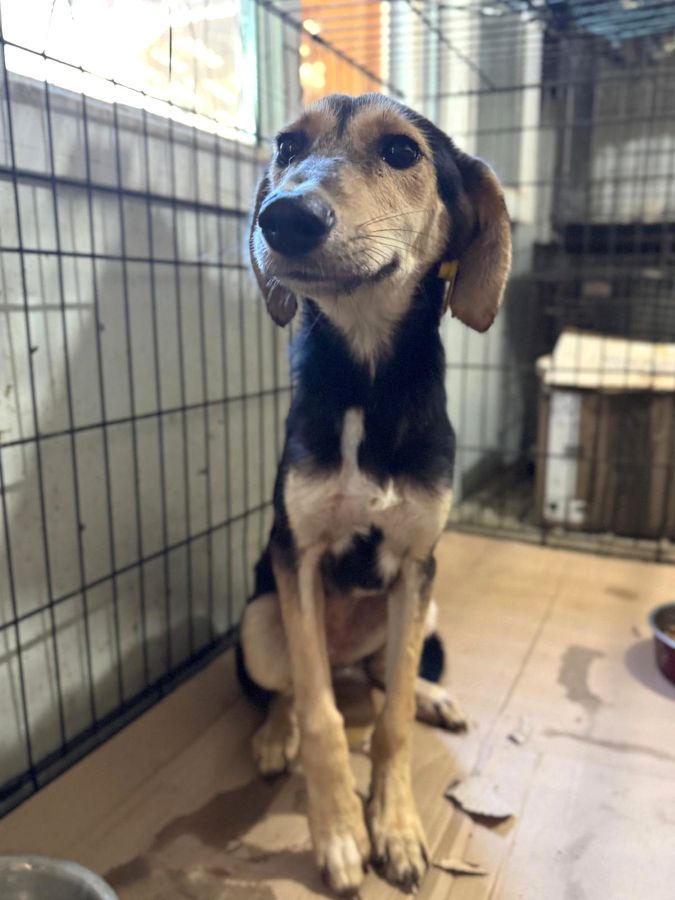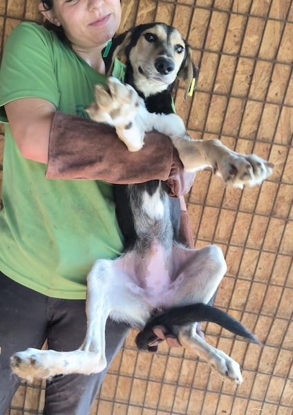 MARIJANA durfte die Box zwischenzeitlich verlassen und sitzt nun wieder mit anderen Hunden zusammen in einem Kennel. Sie freute sich sehr uns wieder zu sehen und ließ sich ausgiebig den Bauch kraulen. Wir konnten sie auch problemlos auf den Arm nehmen.